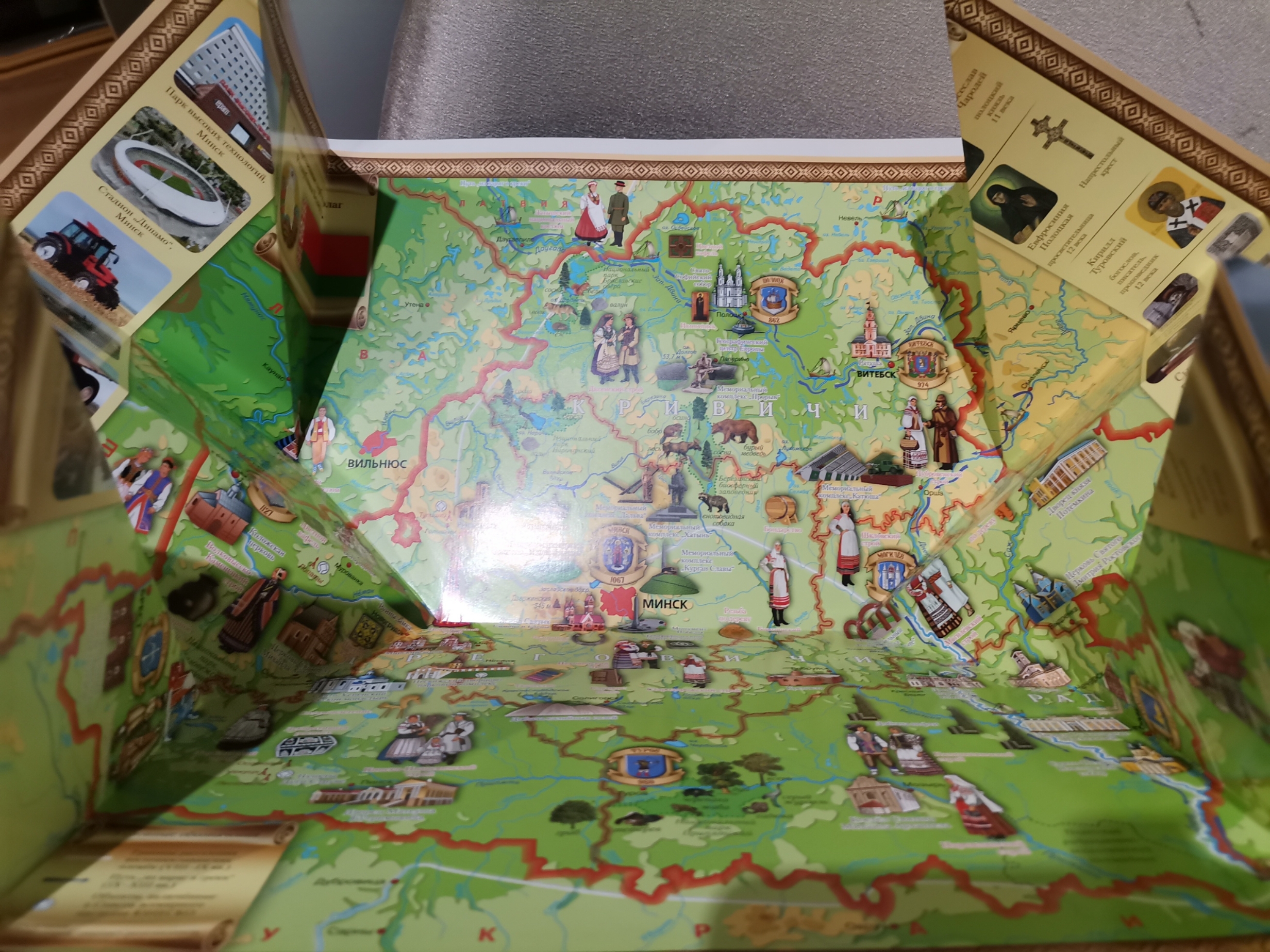 Отражены на карте и основные ремесла, которые распространены в Беларуси. На полях карты размещены изображения выдающихся исторических личностей земли белорусской. Путешествуйте вместе с картой и познавайте нашу удивительную Родину.