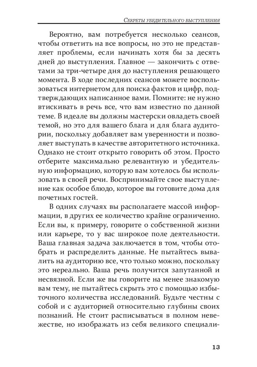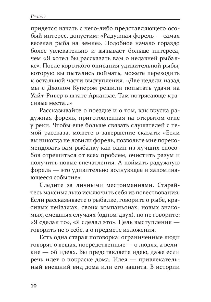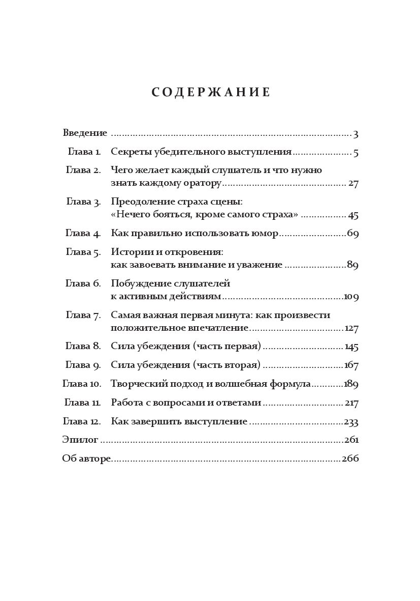 Здесь вы узнаете, как должным образом подготовиться к презентации, сформировать собственный уникальный стиль, преодолеть боязнь сцены и за минуту завоевать любую аудиторию. Это полноценное практическое руководство, содержащее советы, приёмы и примеры из жизни величайших мастеров общения.