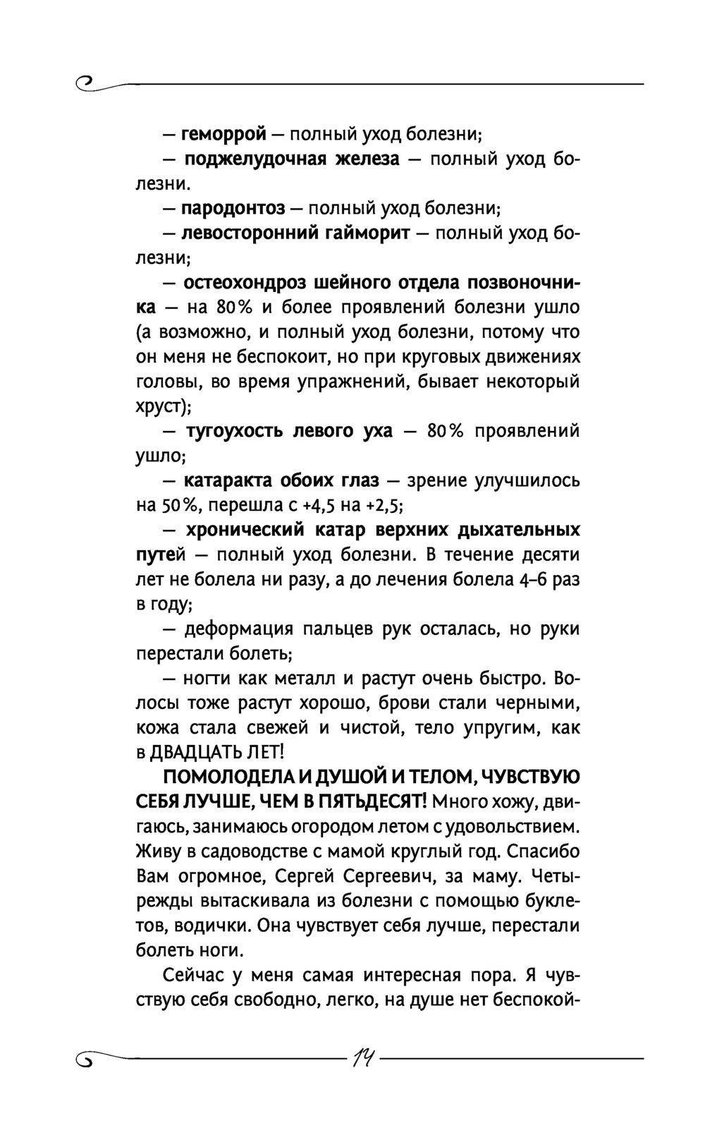 Помимо традиционного взгляда на проблему старения вы сможете получить новые знания, которые Доктор С. С. Коновалов продолжает раскрывать перед читателями в своем Информационно-энергетическом Учении. Отдельные главы посвящены размышлениям Сергея Сергеевича о старости и причинах, ускоряющих процессы старения.