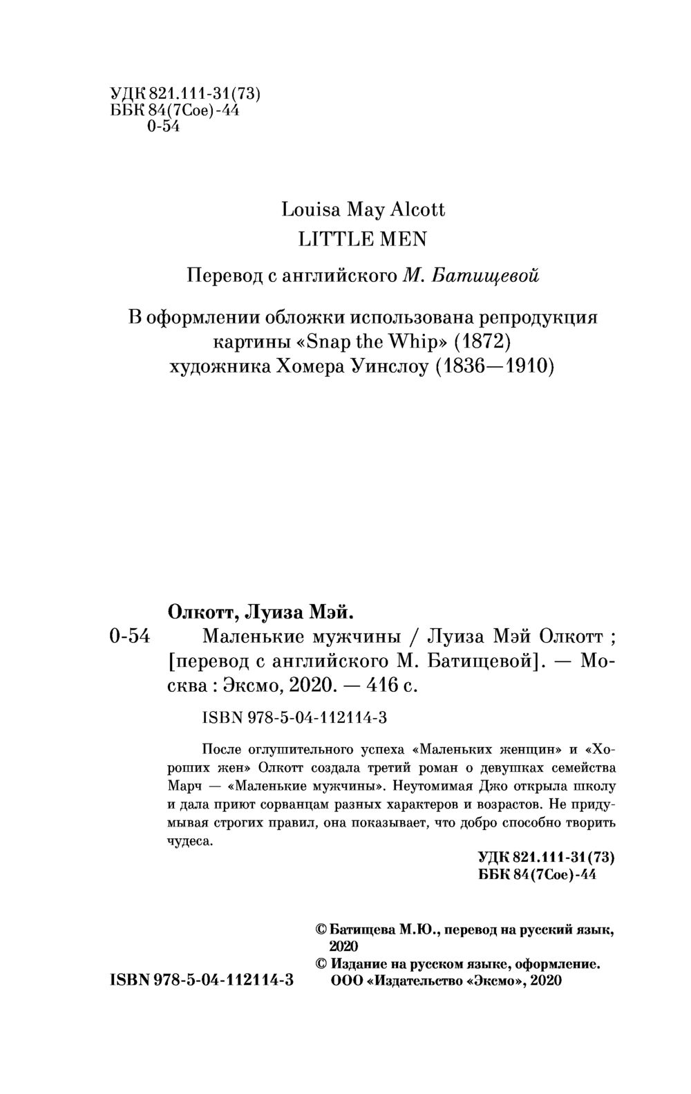 После оглушительного успеха "Маленьких женщин" и "Хороших жен", Олкотт создала третий роман о девушках семейства Марч – "Маленькие мужчины"