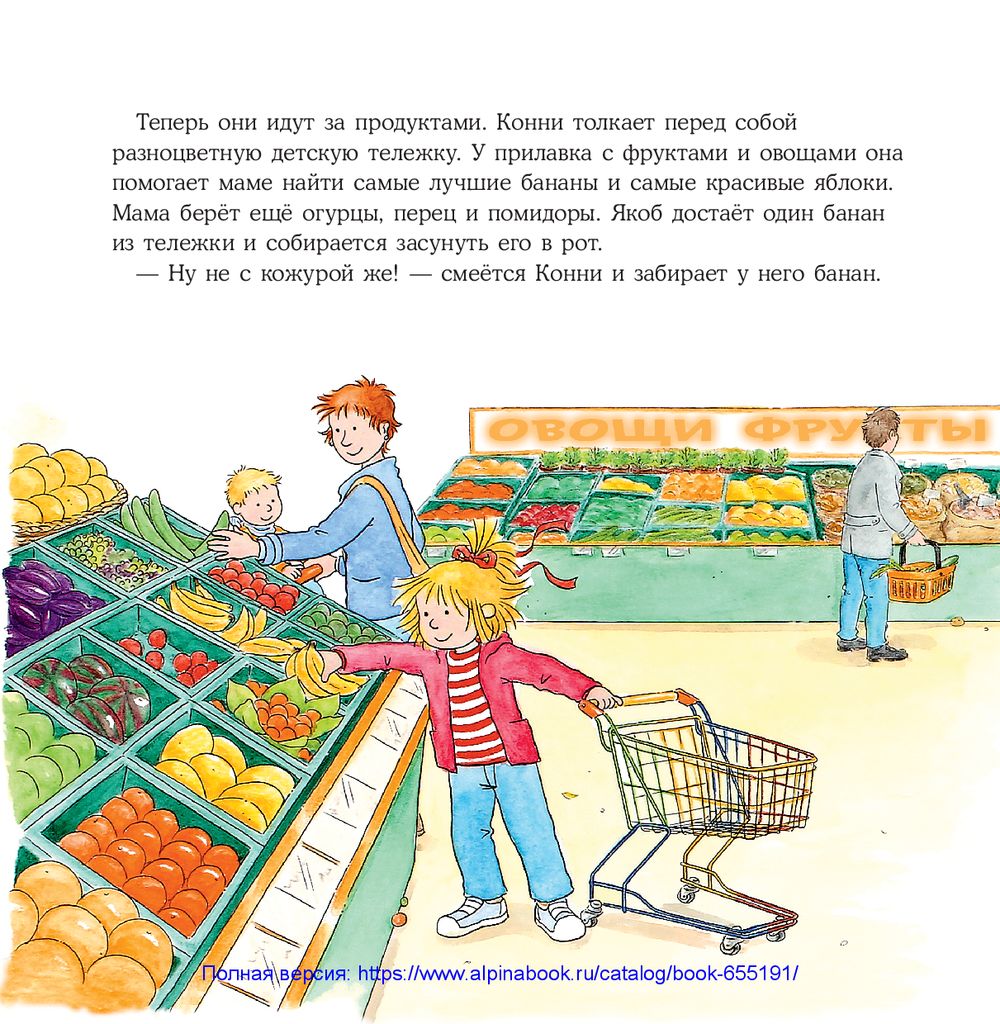 Конни вместе с мамой составляет список покупок, в супермаркете взвешивает овощи и фрукты, помогает складывать покупки на кассе и даже может добежать за хлебом в соседний магазинчик. И в итоге чувствует себя взрослой и самостоятельной – отличный результат.