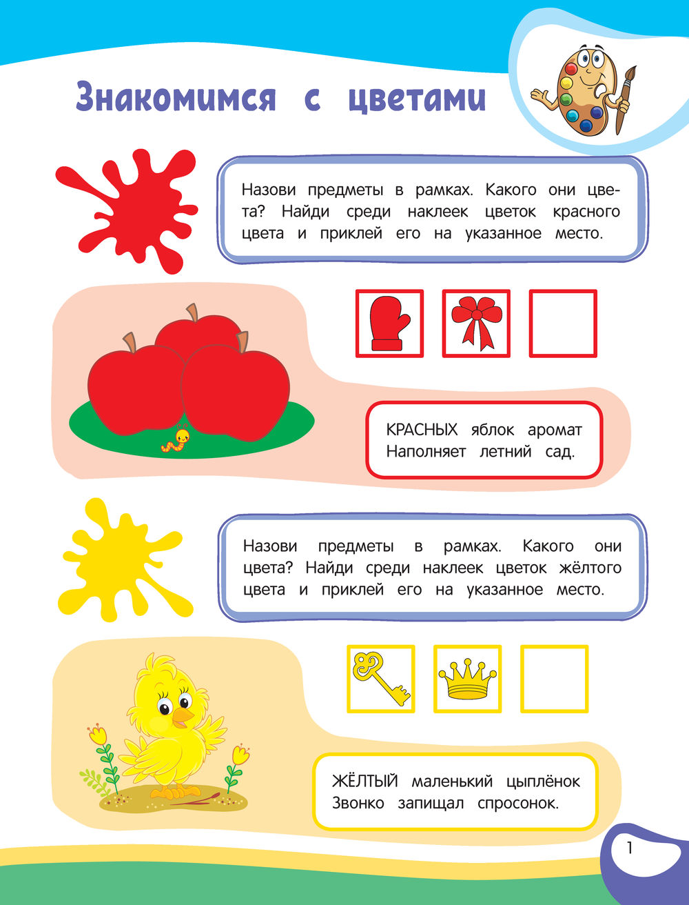 Главная задача пособия – познакомить ребёнка с основными цветами и помочь ему легко и быстро выучить геометрические формы. Выполняя упражнения, малыш будет активно работать с визуальным образом геометрической формы, превращая её в забавный рисунок. При таком подходе одновременно задействована зрительная и моторная память, что значительно ускорит процесс зрительного запоминания. А веселые задания с обучающими и мотивирующими наклейками, помогут малышу подготовить руку к письму, развить внимание и воображение. Книга предназначена для заботливых родителей с целью эффективной организации детского развивающего досуга.