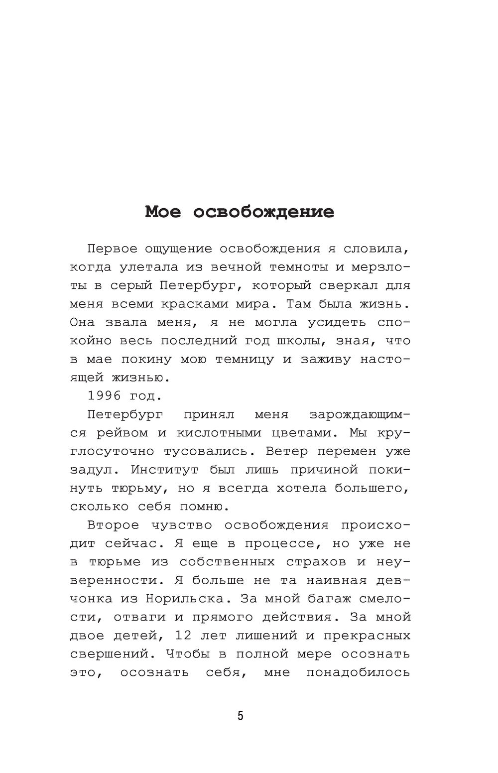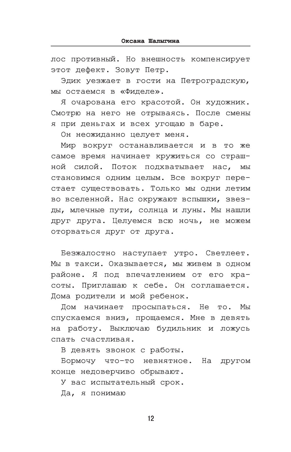 В этой книге Оксана Шалыгина, бывшая гражданская жена художника Петра Павленского, рассказывает историю своих отношений с ним. Это история об абьюзе и насилии, о любви и ненависти, о ависимости и равнодушии. Пронзительный, откровенный, шокирующий рассказ о том, как легко влюбленность и восхищение могут привести в ловушку и о том, какую кровавую цену в этом случае придётся заплатить, чтобы вновь обрести свободу.