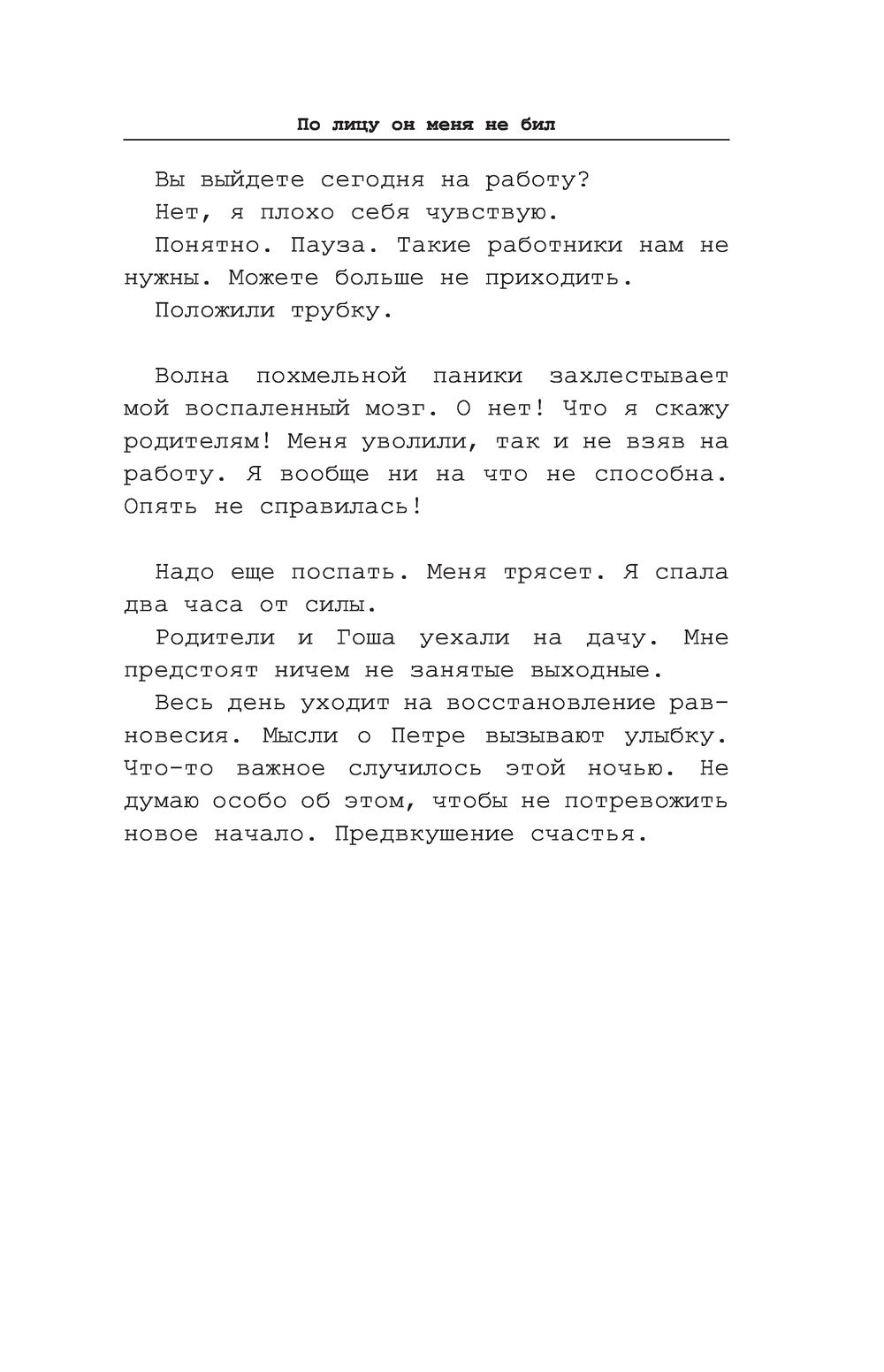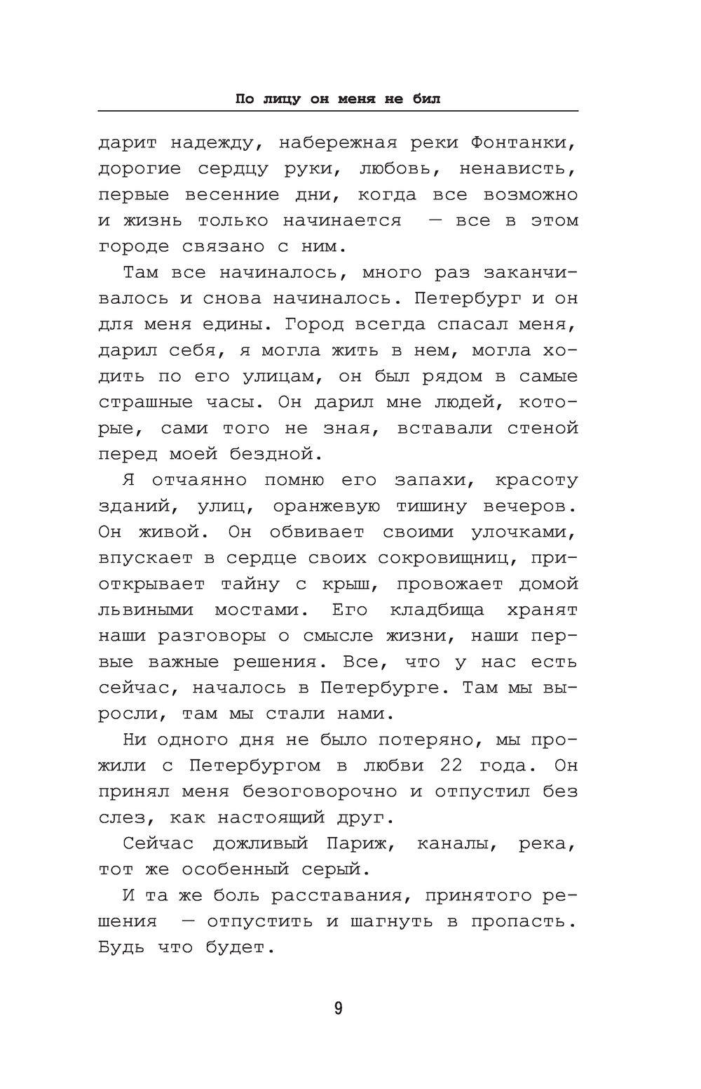 Мы стоим около дверного проема, я решительно говорю, что буду заниматься тем, что интересно мне. Вдруг удар... Я холодею, мое тело немеет, я тупо смотрю на него, не могу поверить в то, что только что произошло. Как будто жду, что он засмеётся или скажет, что это шутка. Но он мертвенно бледен, напряжен, как стрела, готов к новому удару. Я падаю в пропасть. Кровь покинула мое тело, оно омертвело от шока, от обиды, от мгновенного предательства.