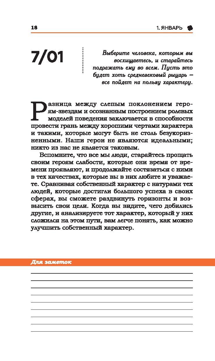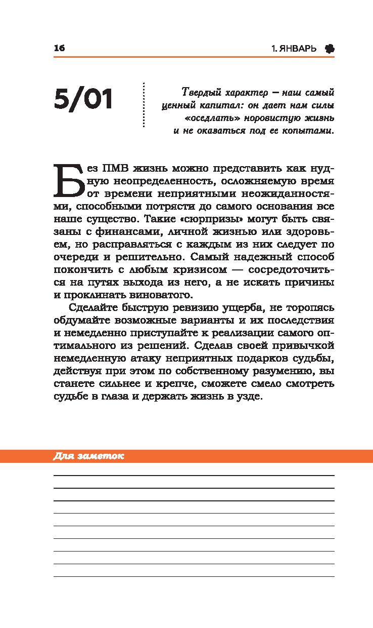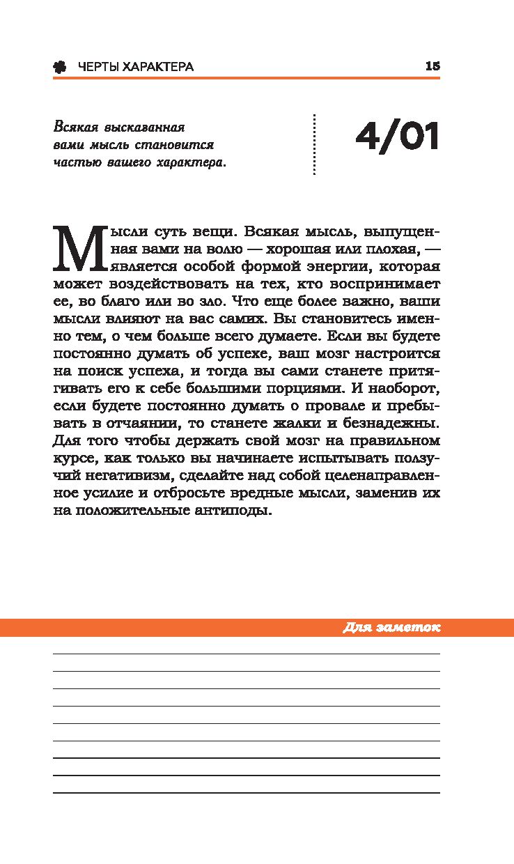 Глубокая мудрость, практичность советов и вдохновляющая философия Наполеона Хилла, направленная на достижение личного успеха, помогли миллионам людей реализовать свои самые сокровенные мечты. В этой книге на каждый день года вам предлагается по одной мысли автора для чтения, размышления и практического применения. Вы сможете начинать утро каждого дня с мыслей-стимулов и питать ими разум, тело, профессиональную деятельность и отношения с людьми.