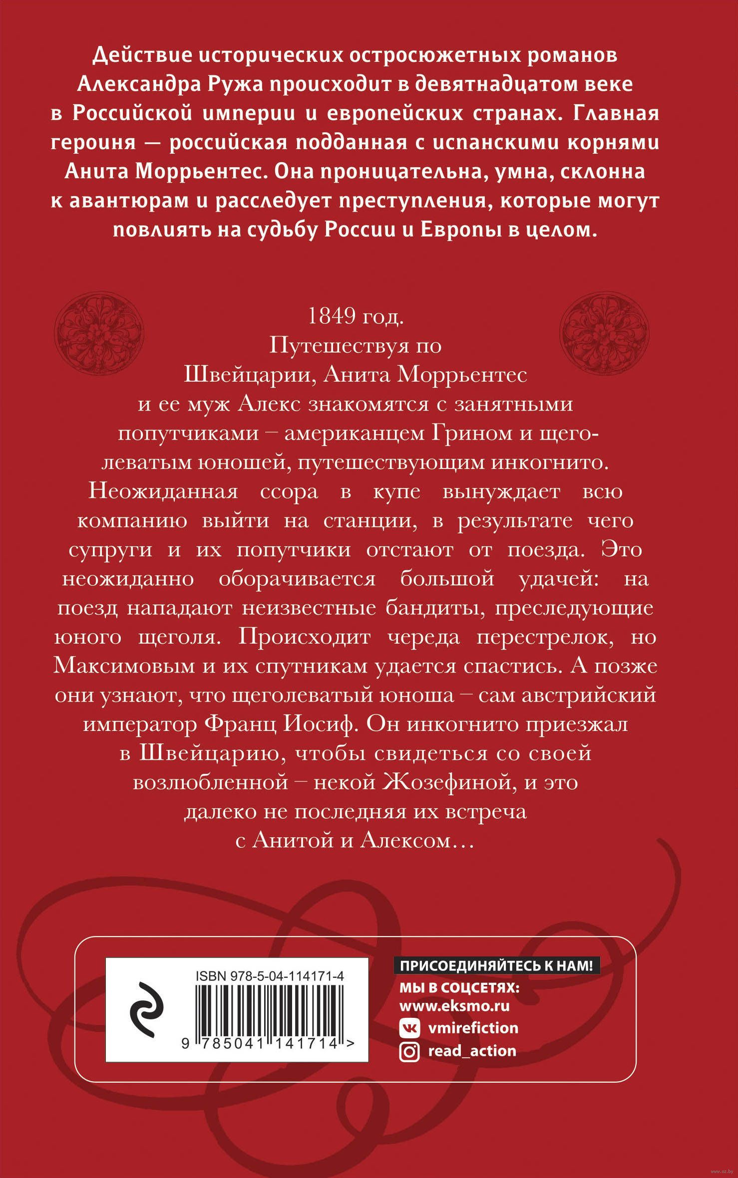 1849 год. Путешествуя по Швейцарии, Анита Моррьентес и ее муж Алекс знакомятся с занятными попутчиками – американцем Грином и щеголеватым юношей, путешествующим инкогнито. Неожиданная ссора в купе вынуждает всю компанию выйти на станции, в результате чего супруги и их попутчики отстают от поезда. Это неожиданно оборачивается большой удачей: на поезд нападают неизвестные бандиты, преследующие юного щеголя. Происходит череда перестрелок, но Максимовым и их спутникам удается спастись. А позже они узнают, что щеголеватый юноша – сам австрийский император Франц-Иосиф. Он инкогнито приезжал в Швейцарию, чтобы свидеться со своей возлюбленной – некой Жозефиной, и это далеко не последняя его встреча с Анитой и Алексом