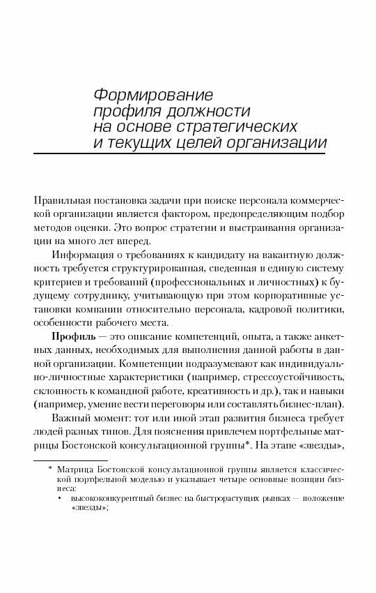 Адаптируя представленные в книге технологии к специфике своего бизнеса и используя их в ежедневной практике, читатель сможет не только создать оптимальную систему оценки и подбора персонала, но и превратить свою каждодневную работу в искусство. В настоящее издание, дополненное и переработанное, вошли новые авторские технологии проведения интервью, позволяющие безошибочно оценить кандидата, затратив на это минимум времени.