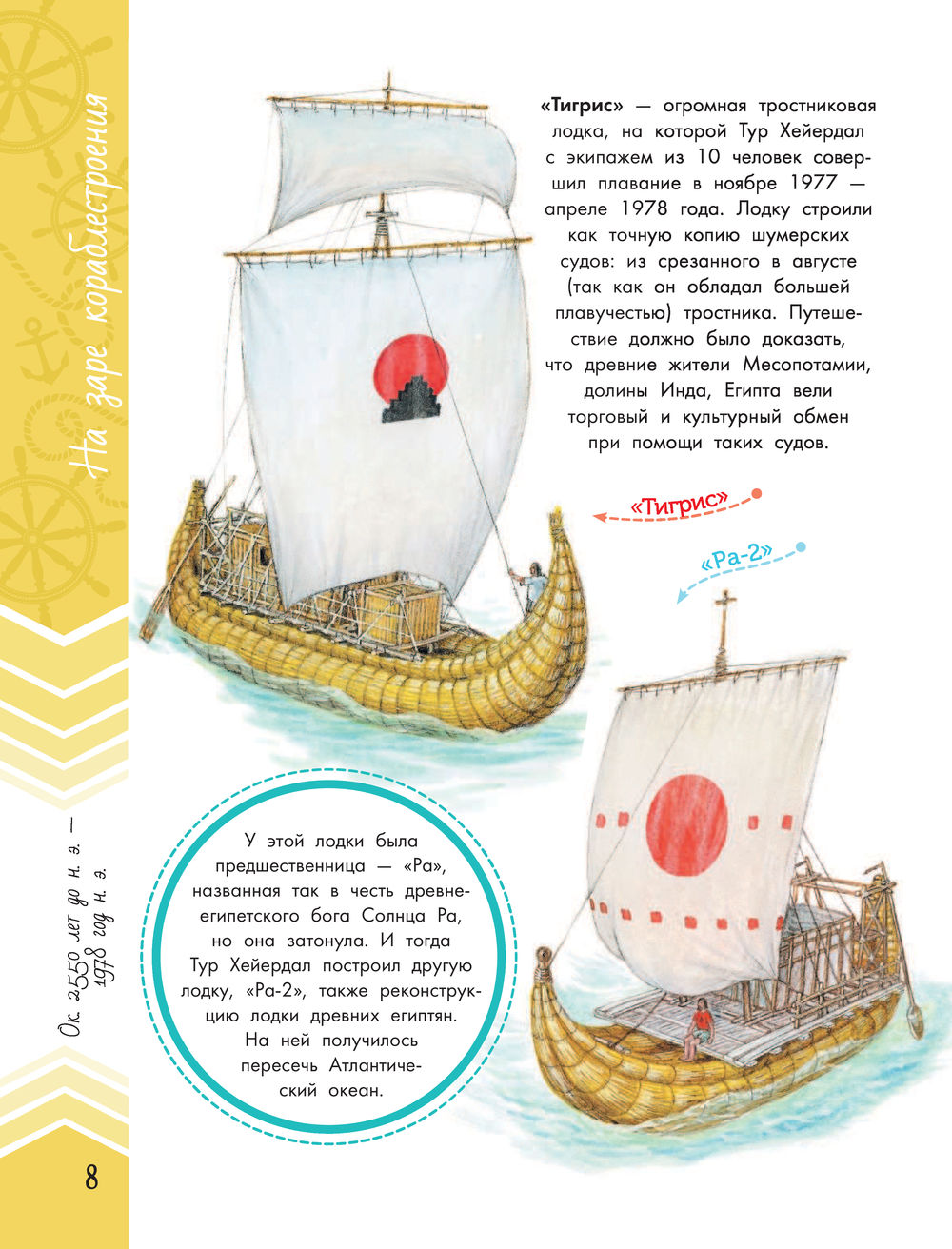 Эта книга расскажет об истории развития кораблестроения и о самых разных речных и морских судах: ладьях, галерах, линкорах, дредноутах, лайнерах и супертанкерах. Вы узнаете, когда был создан первый пароход, как устроены авианосцы, чем известен крейсер "Варяг", как выглядели венецианские галеры и многое-многое другое.