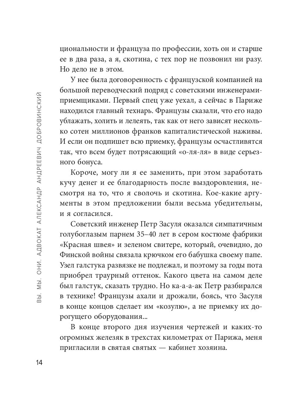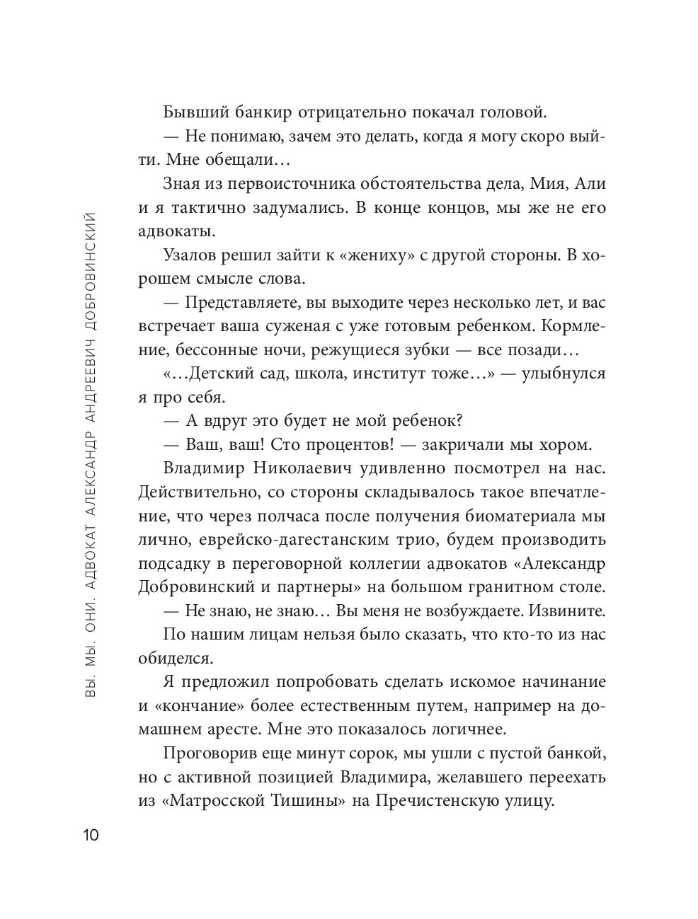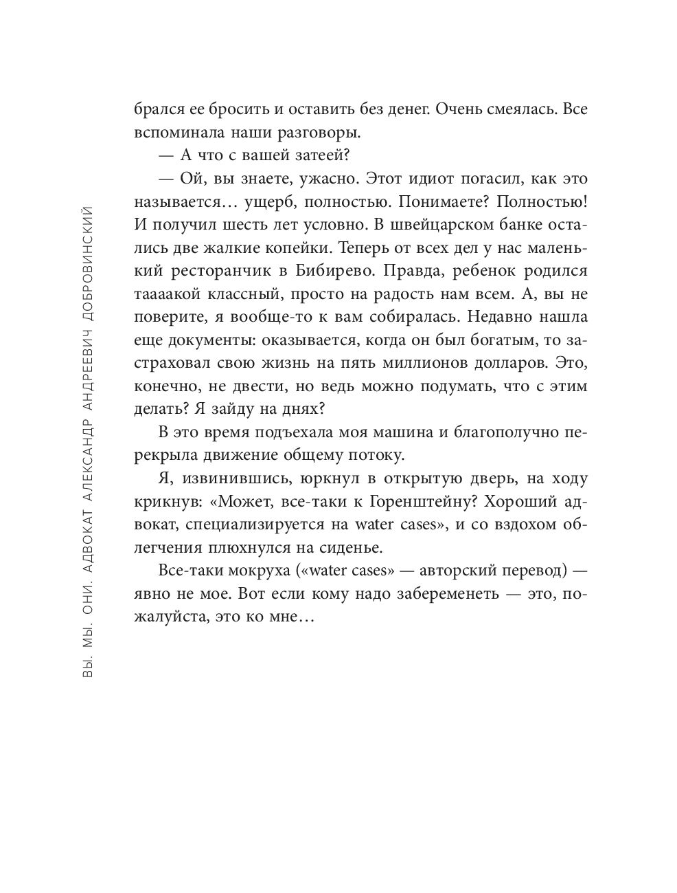 Александр Андреевич Добровинский, известный писатель, коллекционер, гольфист, радиоведущий, лектор, публицист, актер кино, муж, отец, путешественник, гурман и модник точно не заставит вас скучать! В сборнике рассказов Добровинский с присущим ему беспощадным чувством юмора рассказывает о своих юношеских годах и взрослении, о профессии адвоката и выборе дела, о богатстве и деньгах, о путешествиях и жизни за границей, о семье и друзьях.