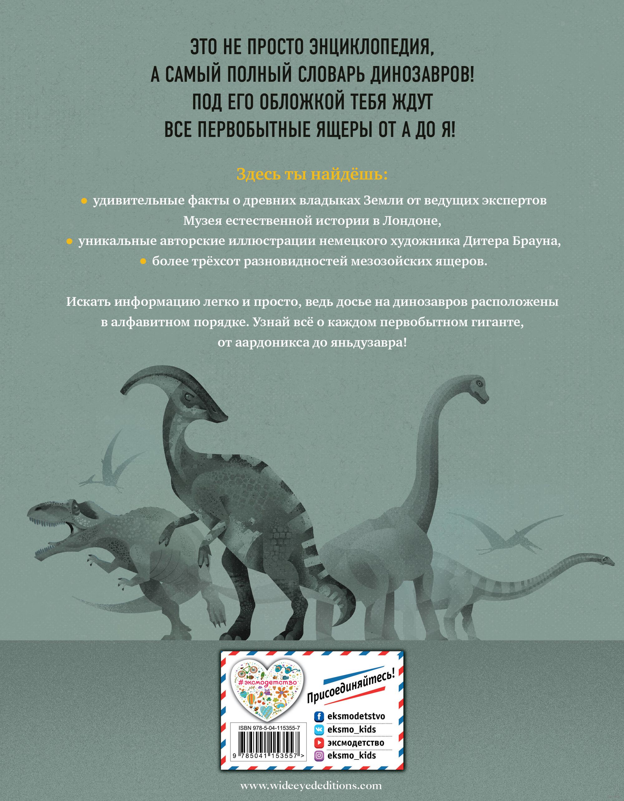 Эта книга откроет поистине невероятнейшие тайны доисторических хозяев нашей планеты. Какой древний исполин не переставал расти в течение всей своей жизни? Кто из травоядных динозавров мог дать отпор даже ужасному хищнику аллозавру? Укус какого мезозойского ящера был втрое мощнее укуса современного льва? Существовали ли динозавры размером с курицу? Кто из ящеров и чем походил на сегодняшнюю птицу эму? Издание даст ответы на эти и многие другие вопросы об удивительных динозаврах, а неповторимые иллюстрации художника Дитера Брауна дадут ребятам возможность разглядеть каждого первобытного гиганта во всех подробностях!