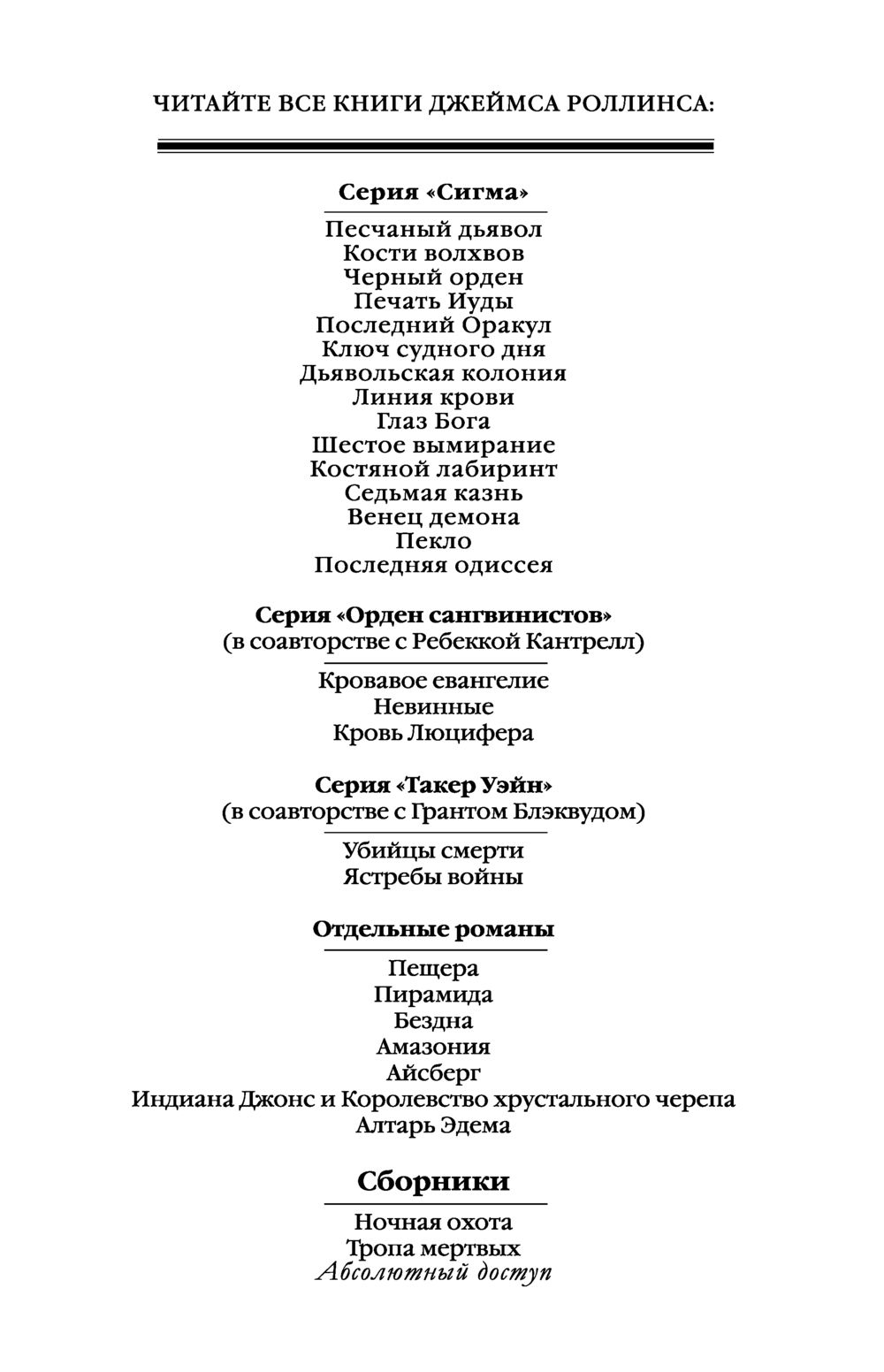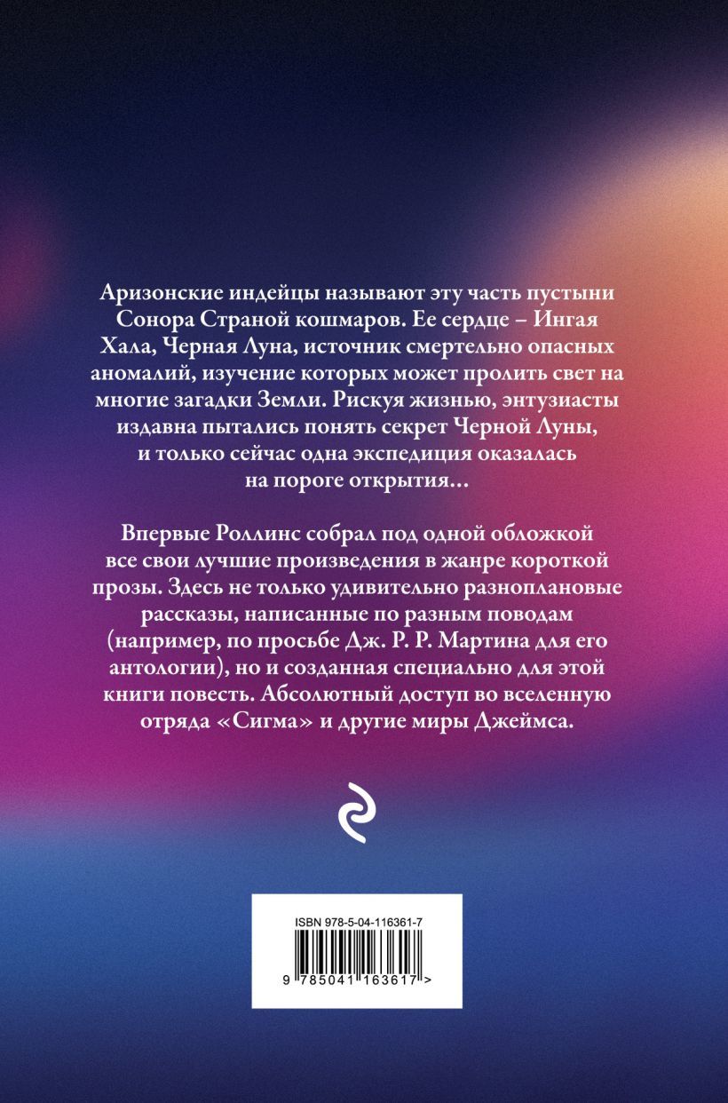 Первая авторская антология лучшей короткой прозы Роллинса. Аризонские индейцы называют эту часть пустыни Сонора Страной кошмаров. Ее сердце – Ингая Хала, Черная Луна, источник смертельно опасных аномалий, изучение которых может пролить свет на многие загадки Земли. Рискуя жизнями, энтузиасты издавна пытались понять секрет Черной Луны, и только сейчас одна экспедиция оказалась на пороге открытия...
