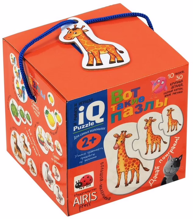Увлекательная игра и 30 карточек, с помощью которых ребёнок познакомится с понятием "большой-маленький" и научится сравнивать предметы. Один и тот же объект здесь изображён большим, средним и маленьким. Ребёнок будет подбирать три детали с одинаковыми картинками разного размера и складывать их в пазл.