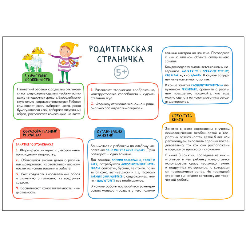 Книга "Декоративное творчество 5+" из серии "Школа Семи Гномов. Мастерская" – это красочный альбом для занятий творчеством с ребенком от 5 до 6 лет. Занятия на близкие и понятные ребенку темы расположены по мере усложнения: поступательно переходя от освоения простых навыков к более сложным заданиям, ребенок научится создавать творческую работу из подручных материалов с помощью клея и пластилина.