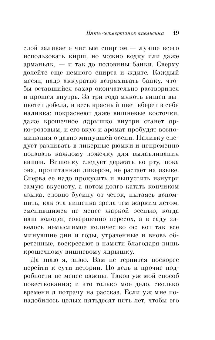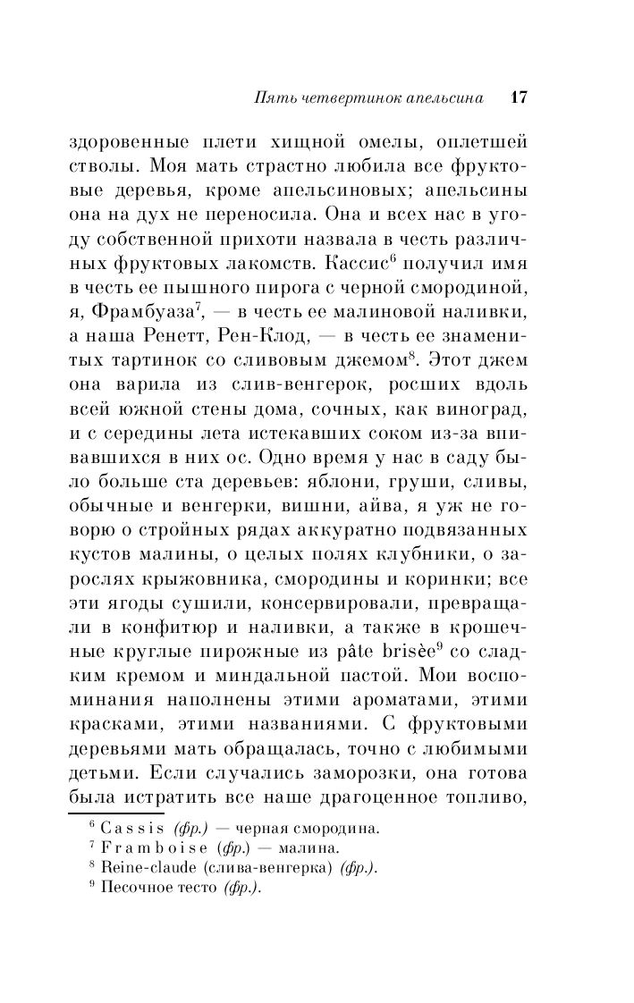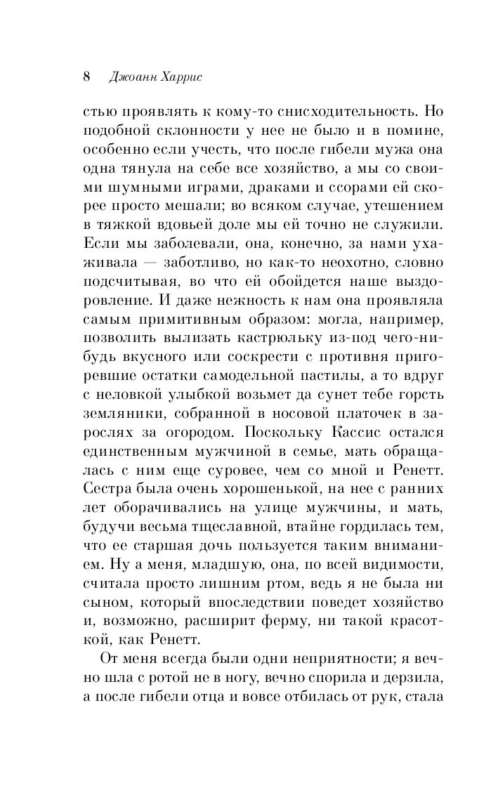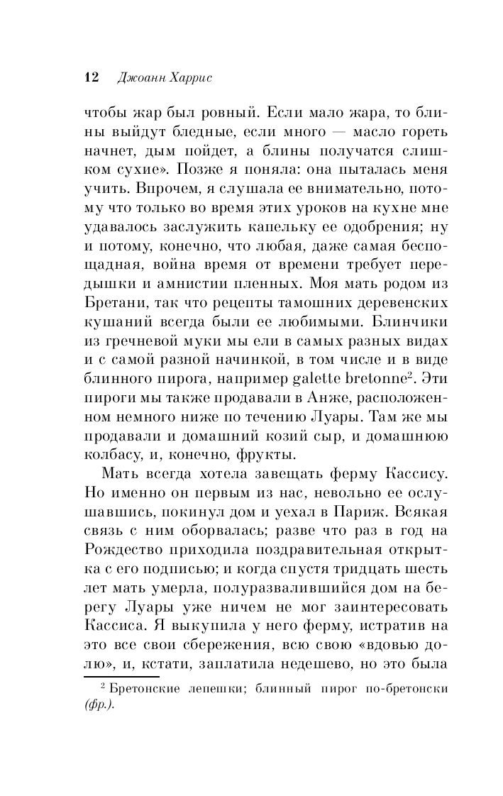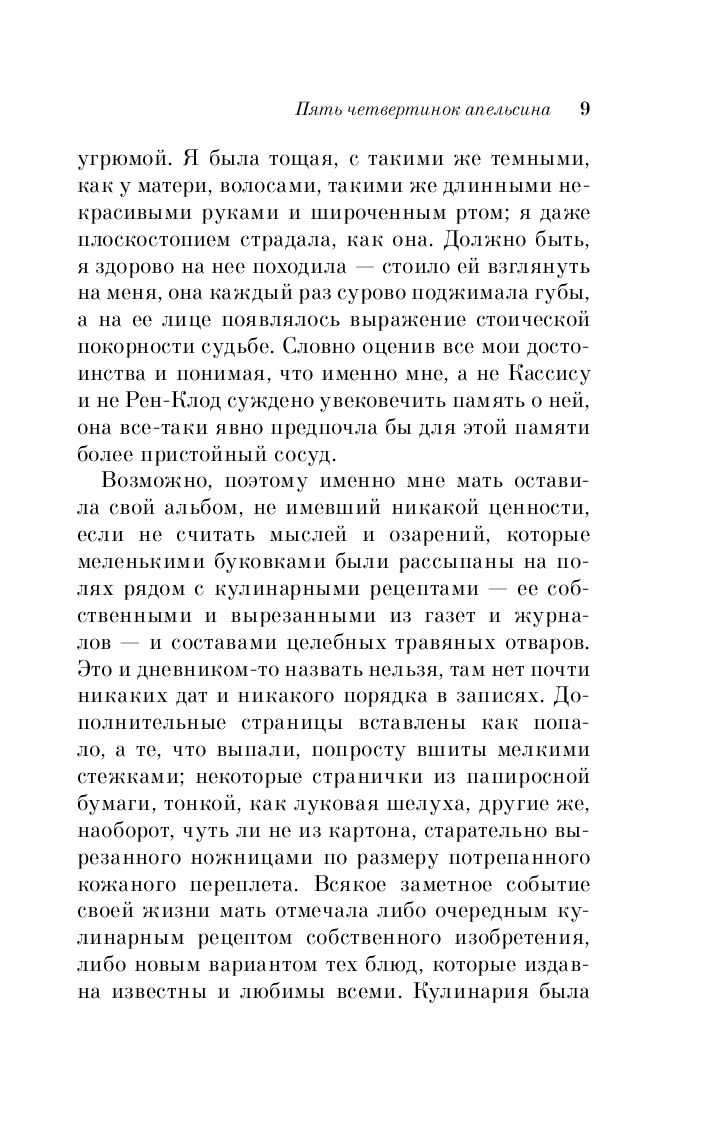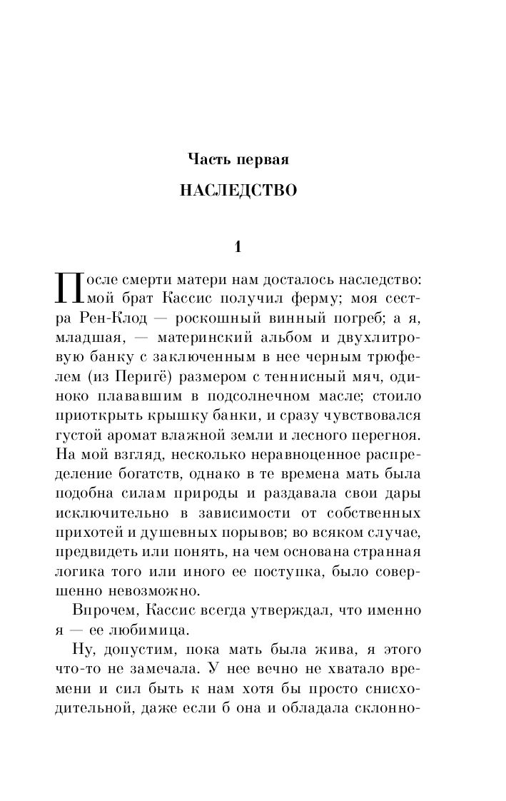 От матери в наследство Фрамбуаза получила альбом с кулинарными рецептами – негусто, если учесть, что ее брату Кассису досталась ферма, а старшей сестре Рен-Клод – винный погреб со всем содержимым. Но весь фокус в том, что на полях альбома, рядом с рецептами разных блюд и травяных снадобий, мать записывала свои мысли и признания относительно некоторых событий ее жизни – словом, вела своеобразный дневник. И в этом дневнике Фрамбуаза пытается найти ответы на мрачные загадки прошлого.
