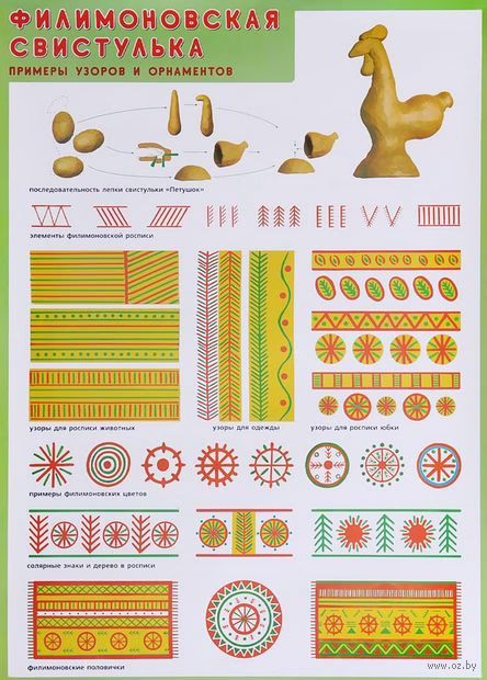 Филимоновская свистулька. Примеры узоров и орнаментов. Плакат
