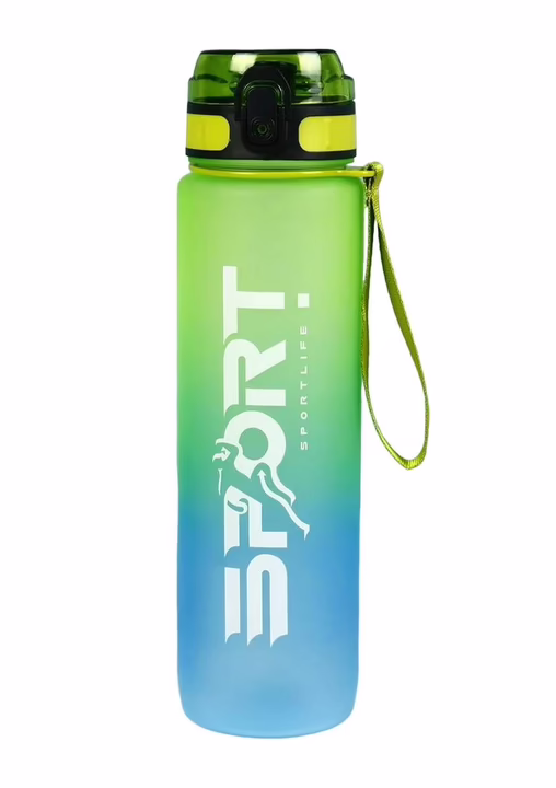 Бутылочка для воды из гипоаллергенного пластика, оснащена завинчивающейся крышкой, поильником, дополнительной крышкой "на кнопке", которая закрывает поильник, ремешком.