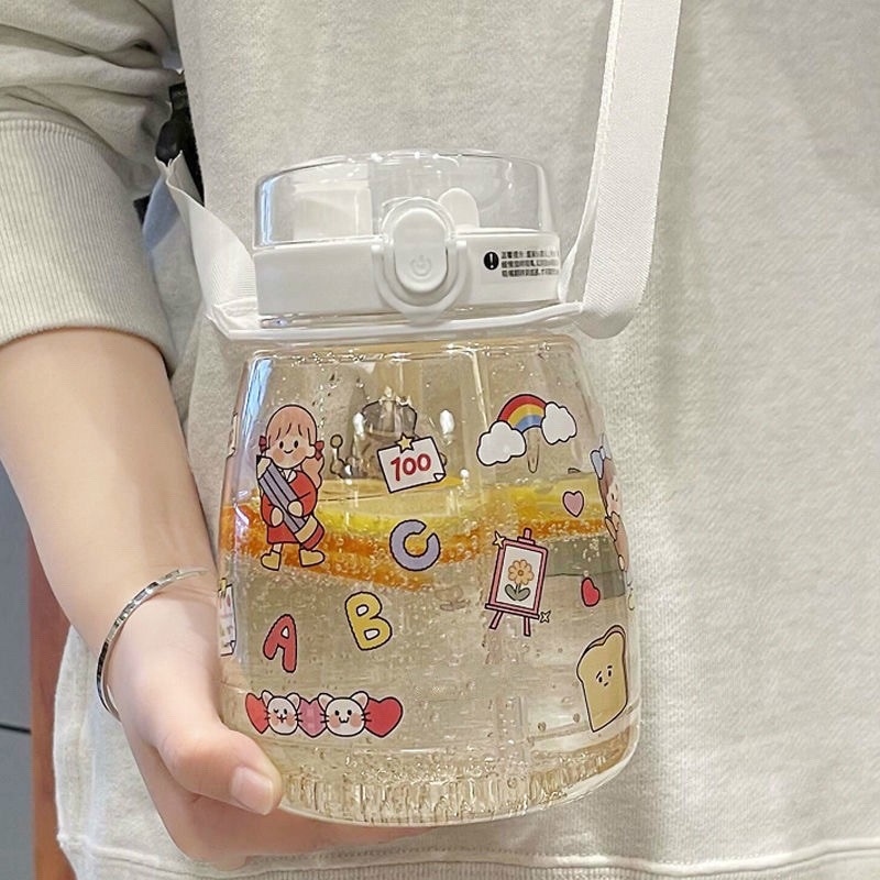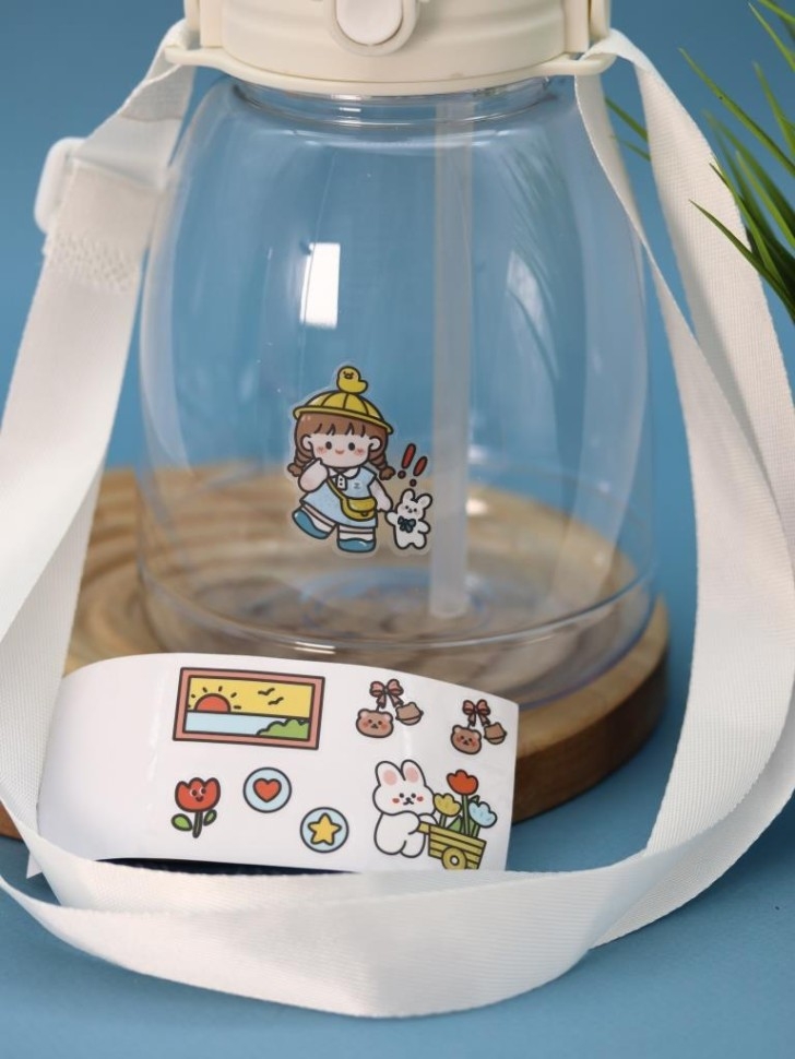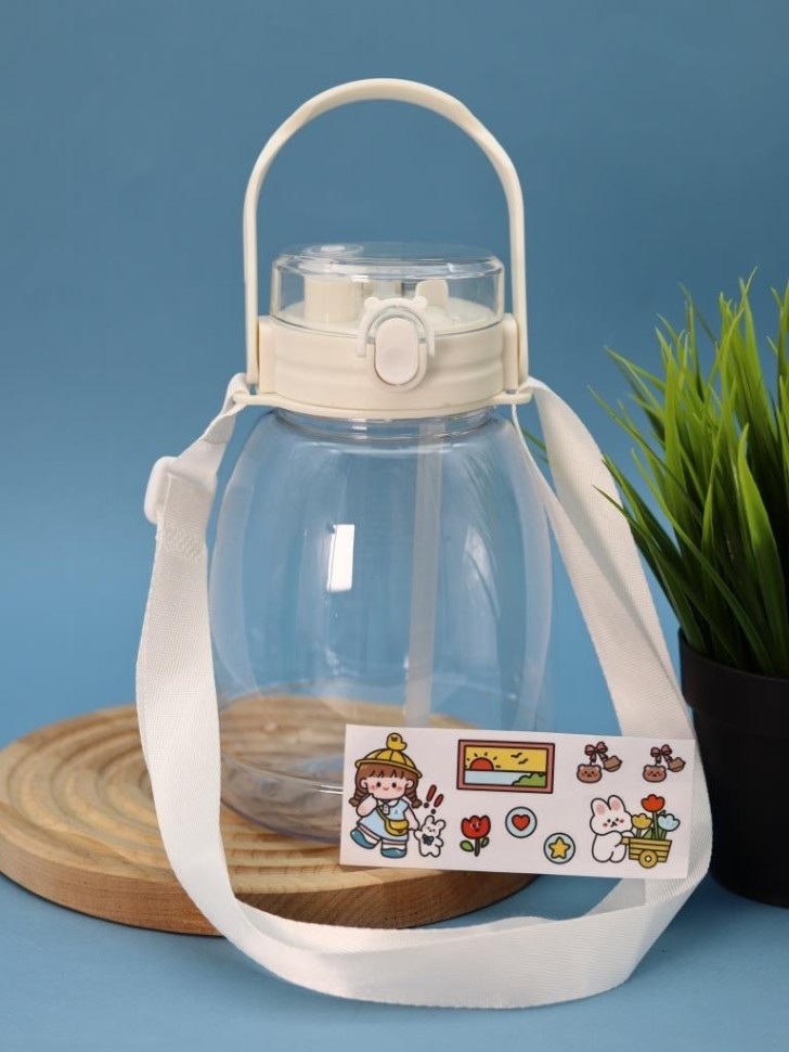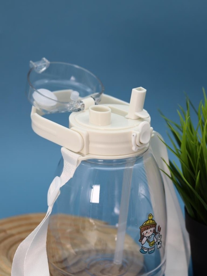 В комплект входят декоративные стикеры и яркий ремешок, позволяющий персонализировать бутылку и носить её с комфортом. Лёгкий и прочный материал делает бутылку удобной в использовании даже для детей.