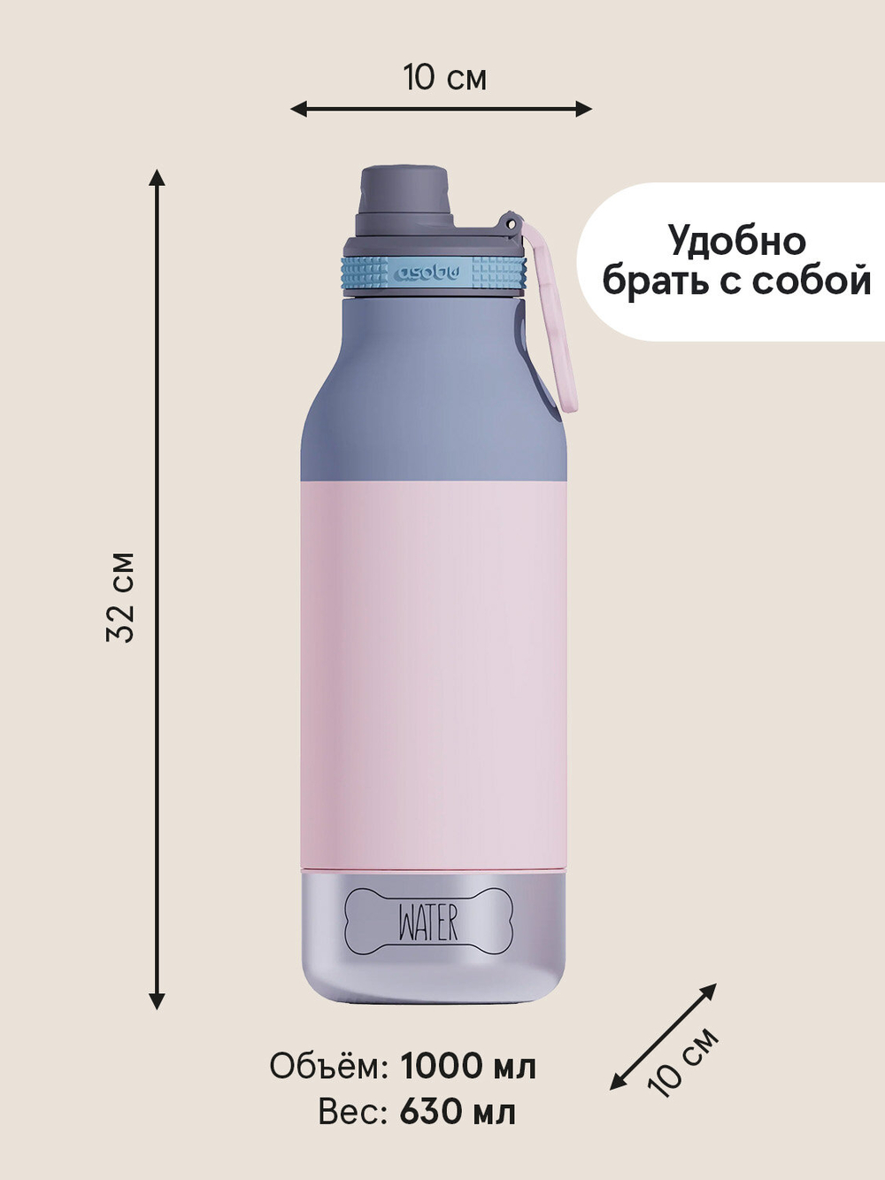 Прочная конструкция из нержавеющей стали защищает от протечек и обеспечивает чистый вкус напитка, а материал без BPA безопасен для вас и вашего пушистого друга. Отдельные миски и герметичная конструкция помогают избежать перекрёстного загрязнения, а уход за бутылочкой остаётся лёгким и удобным.