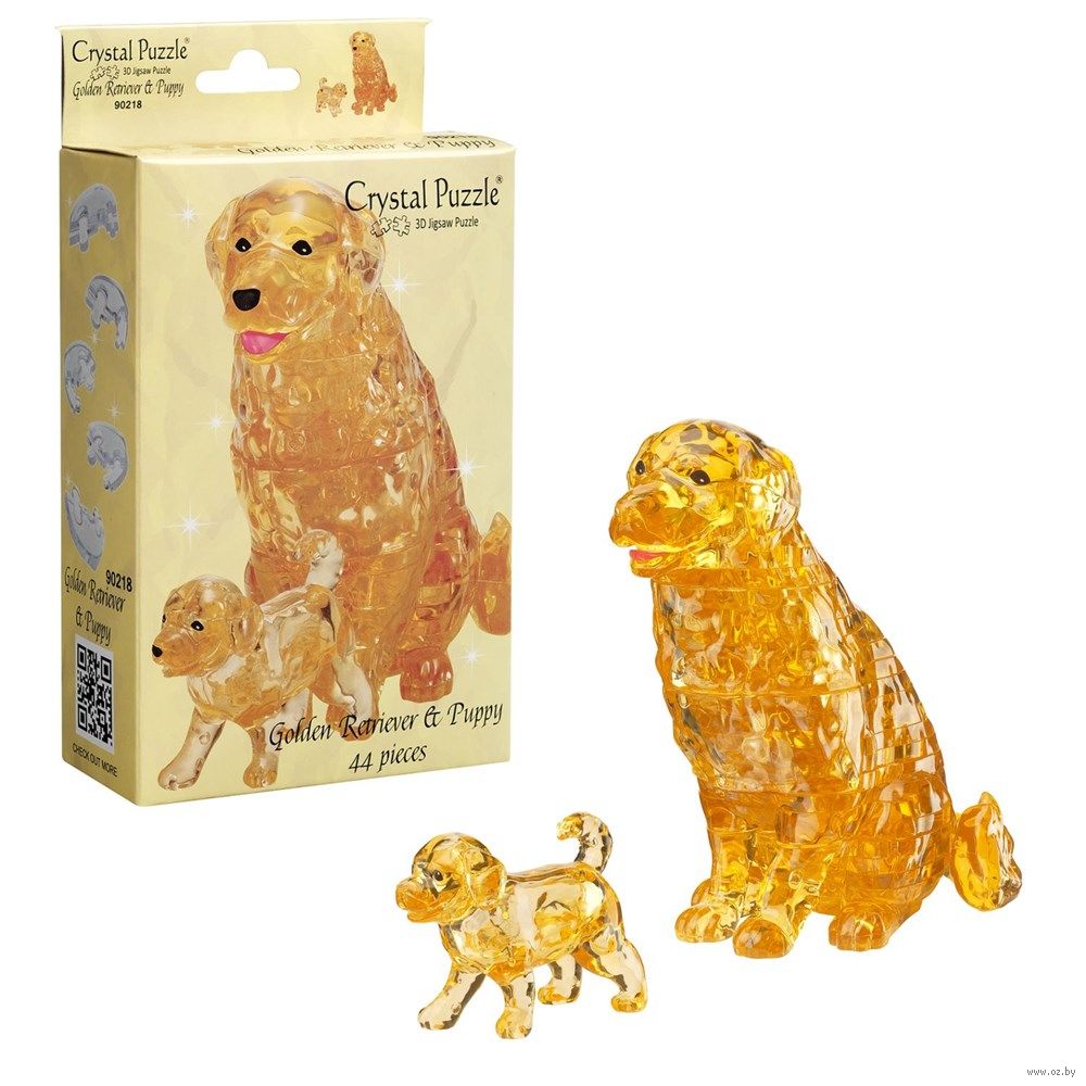 Эта обаятельная парочка понравится всем любителям собак и пазлов. В наборе 44 детали из полупрозрачного пластика и инструкция на русском языке. Детали легко крепятся друг к другу, вместе составляя надежную объемную фигурку. Когда обе фигурки будут собраны (приготовьтесь, на это потребуется время!), с ними будет весело играть в собачью семью. Готовые фигурки очень гладкие и крепкие, как все собранные Crystal puzzle.