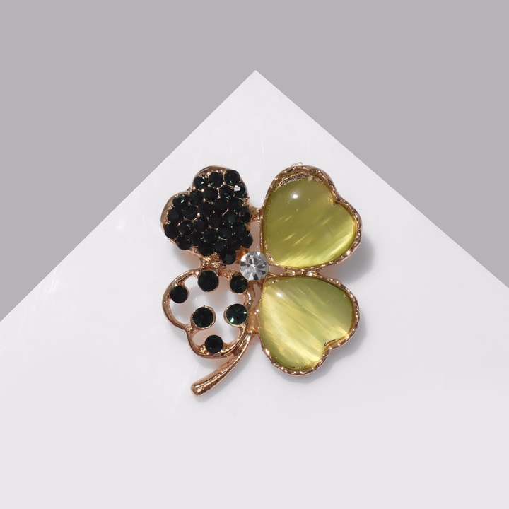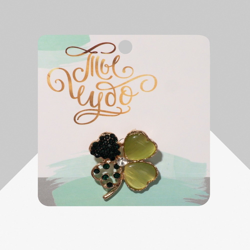 Брошь "Клевер" (зелёная в золоте)