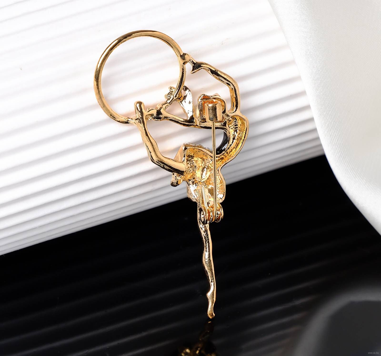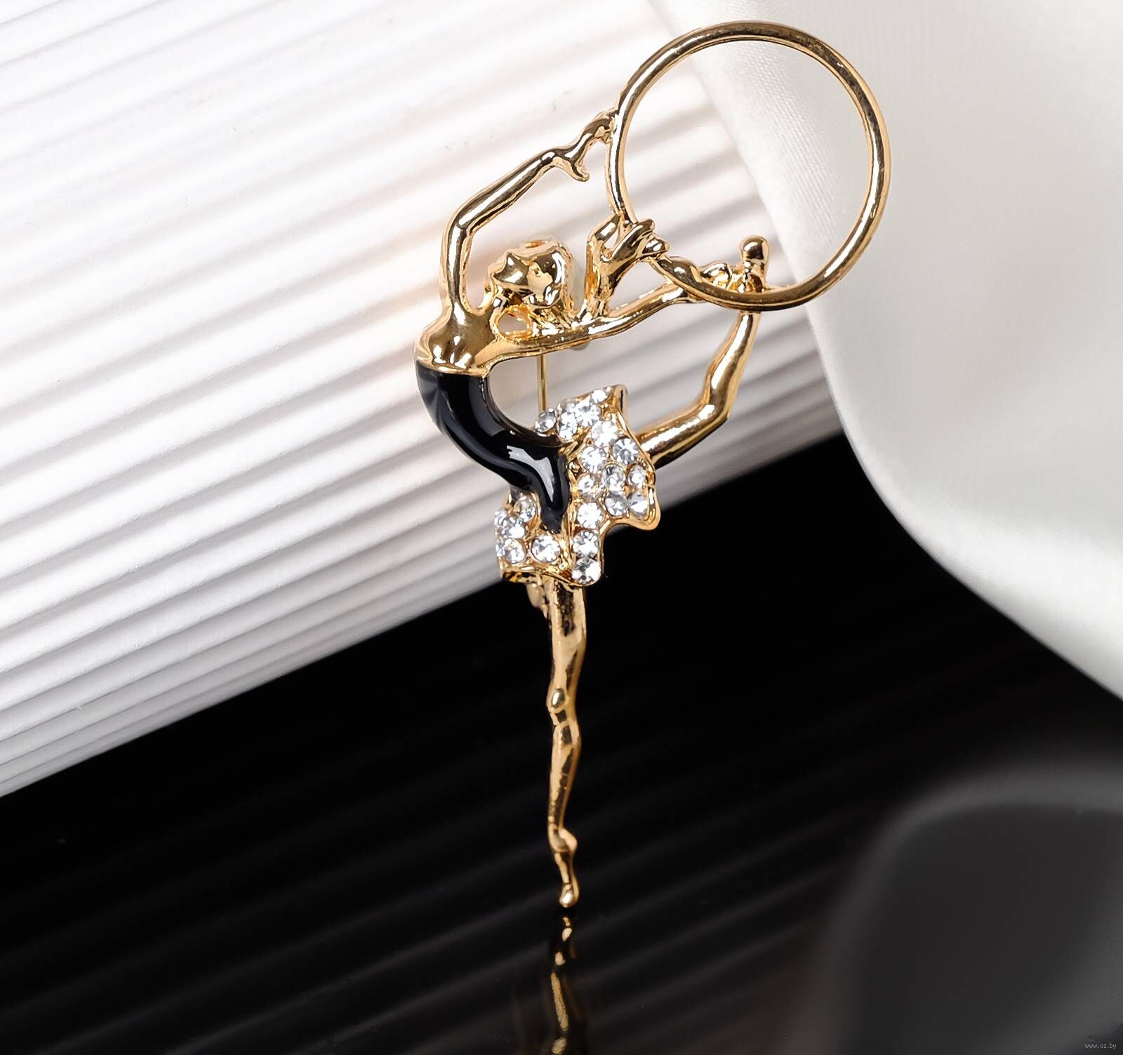 Эта брошь не только украшает, но и вдохновляет. Тематика гимнастики и балета отражает стремление к совершенству и лёгкости, что делает её отличным выбором для спортивных мероприятий, танцевальных вечеров или просто как акцент в повседневном образе. Вставки из страз и эмали придают изделию яркость и блеск, подчеркивая его уникальный дизайн.