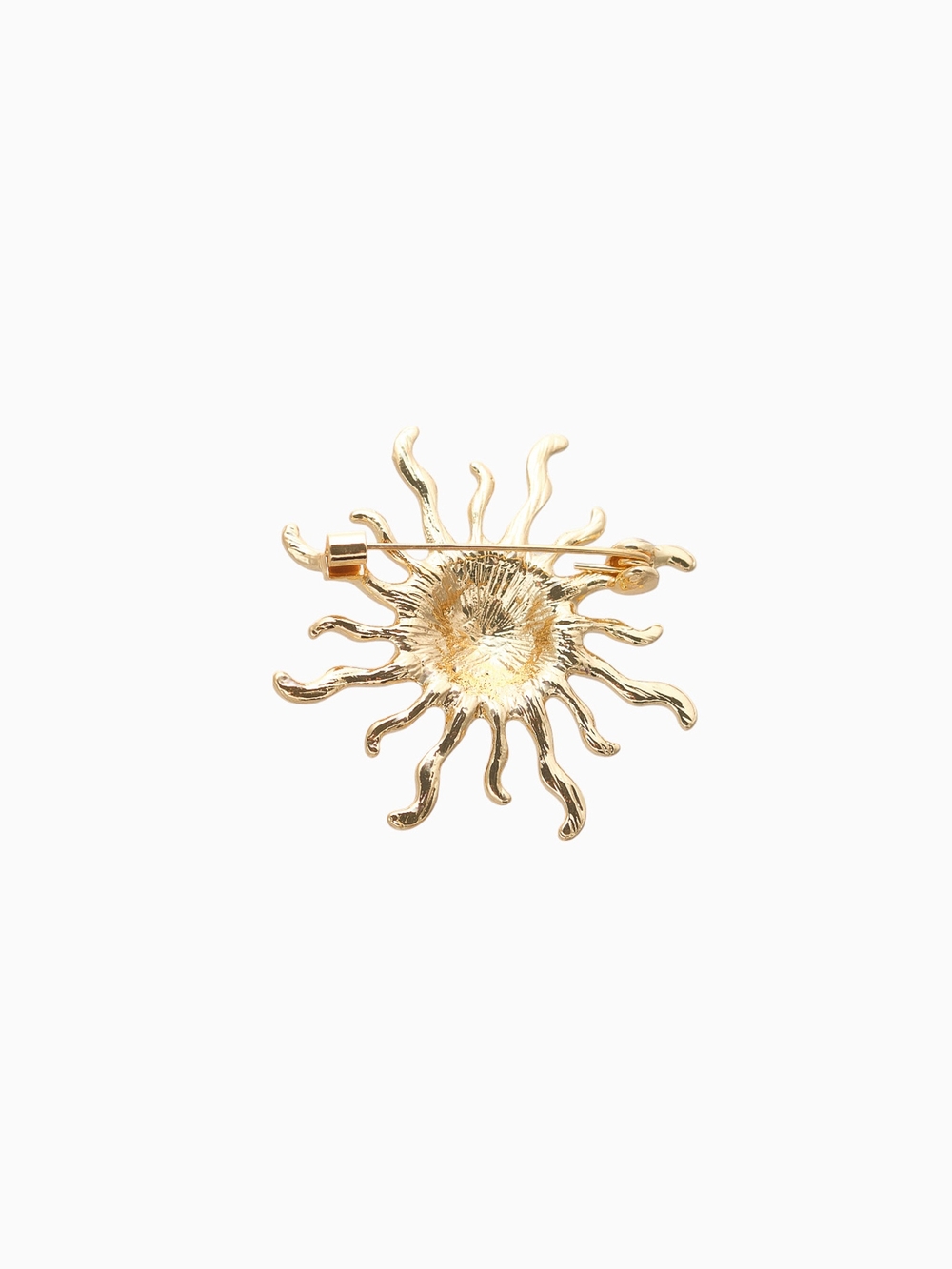 Золотистая брошь с мотивом солнца – это символ тепла и света, воплощённый в лаконичном и современном дизайне. С длиной 5 см изделие становится заметным, но в то же время изящным акцентом в образе, который подчеркнёт индивидуальность и внутреннюю гармонию.