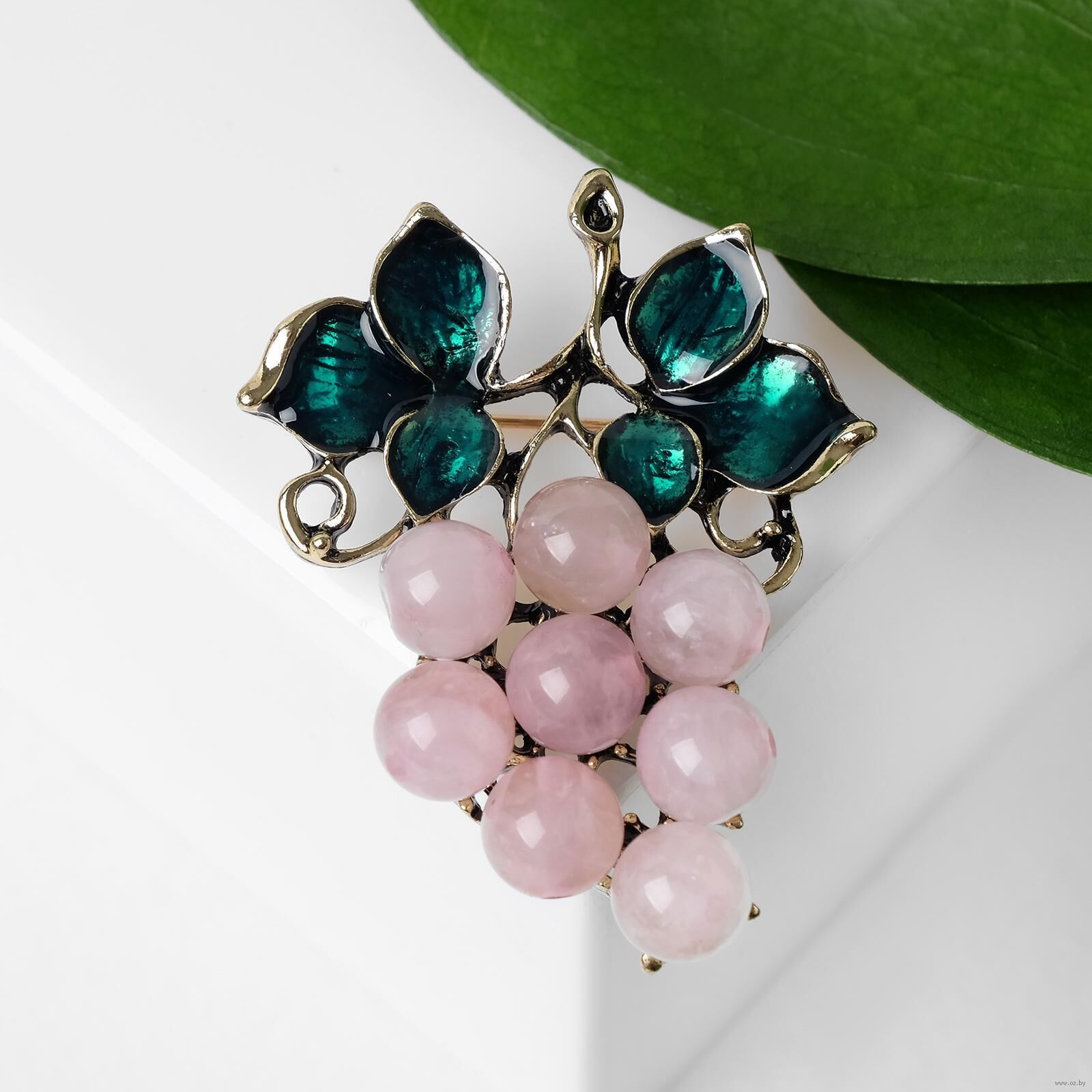 Брошь, вдохновлённая изящной лозой винограда, сочетает в себе нежные розово-зелёные оттенки кварца и глубину чернёного золота, создавая уникальную гармонию цвета и формы. Длина 5 см позволяет изделию стать выразительным акцентом в любом образе, подчёркивая утончённый вкус и индивидуальность своей обладательницы.