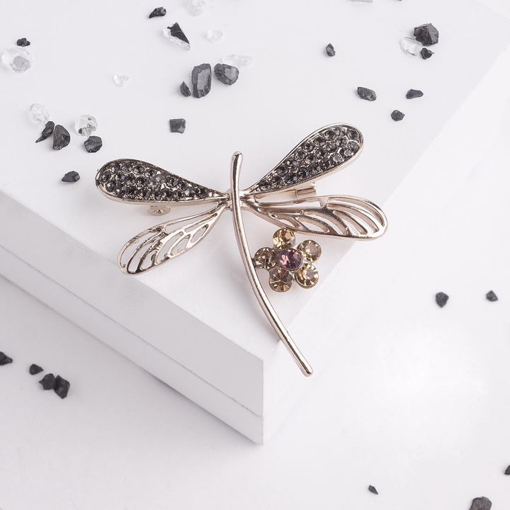 Очаровательная брошь в виде стрекозы с цветочком – это утончённый аксессуар, который добавит изысканности в любой образ. С длиной 4,5 см, она идеально подходит для женщин всех возрастов и станет замечательным подарком для бабушки, мамы, дочери или внучки. Изготовленная из качественного металла и украшенная стразами, эта брошь привлекает внимание своим элегантным дизайном в серо-коричневых тонах с кофейным золотом.
