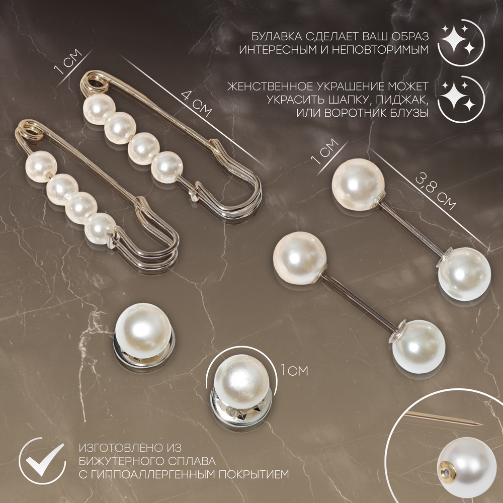 Каждая булавка аккуратно выполнена с использованием качественных материалов, что гарантирует долговечность и комфорт при ношении. Благодаря лаконичному дизайну и нейтральной цветовой гамме, они идеально подходят как для повседневных, так и для праздничных нарядов, подчеркивая утончённый вкус своей обладательницы.