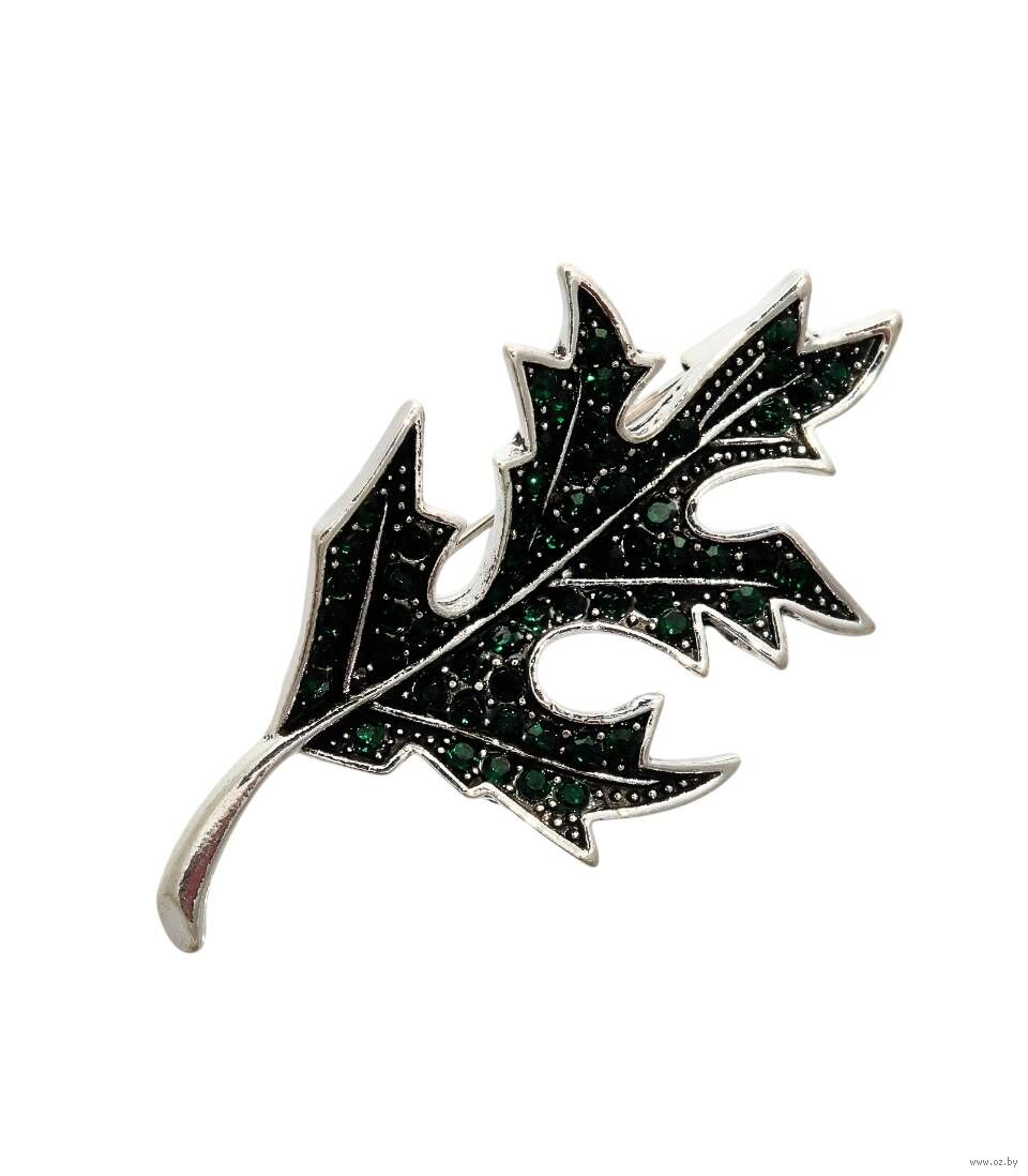Брошь "Лист одуванчика" (зелёный в чернёном серебре)