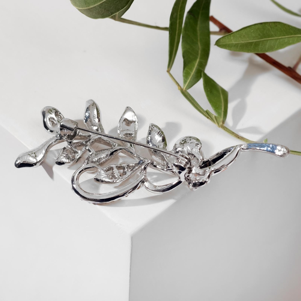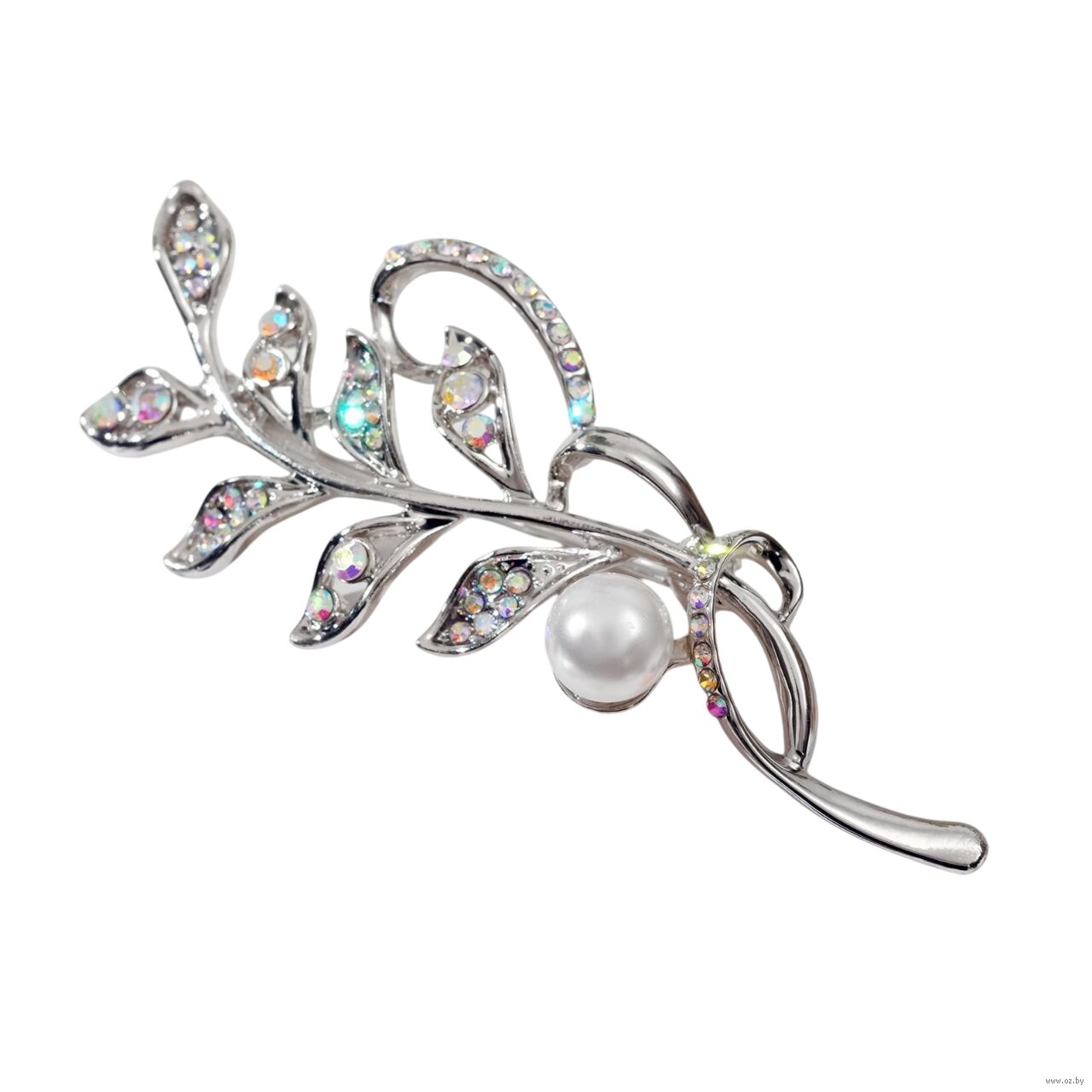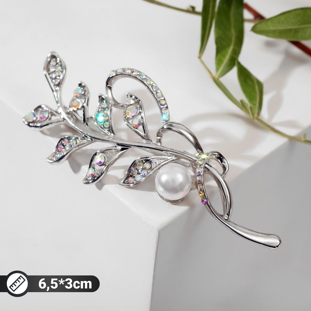 Брошь "Ветвь с жемчужиной" (радужный в серебре)