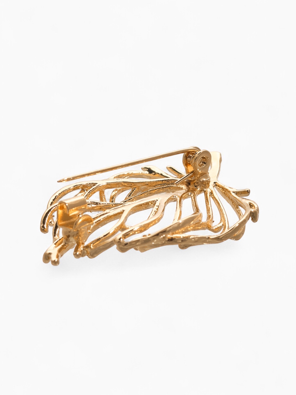 Брошь имеет компактные размеры (всего 3,5 см в длину), что делает её отличной парой для украшения одежды или аксессуаров. Изготовлена из высококачественного металла с золотым покрытием, придающим отделке блеск и престижность, она создаст приятное впечатление, добавляя немного игры света в любой ансамбль.