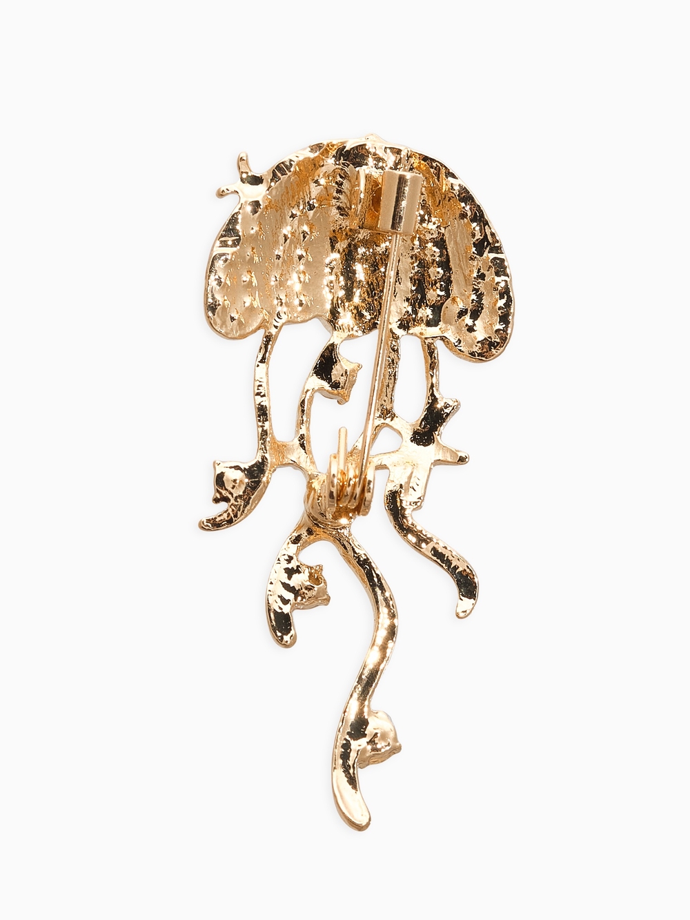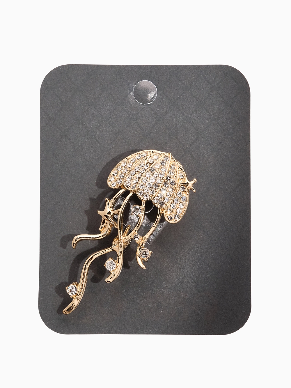 Отправьтесь в путешествие по морским глубинам с брошь в виде загадочной медузы, чья белоснежная сущность переливается в золотом обрамлении. Элегантный и одновременно интригующий аксессуар, эта брошь создаст атмосферу таинственности и красоты, добавляя вашему образу оригинальности и элегантности.
