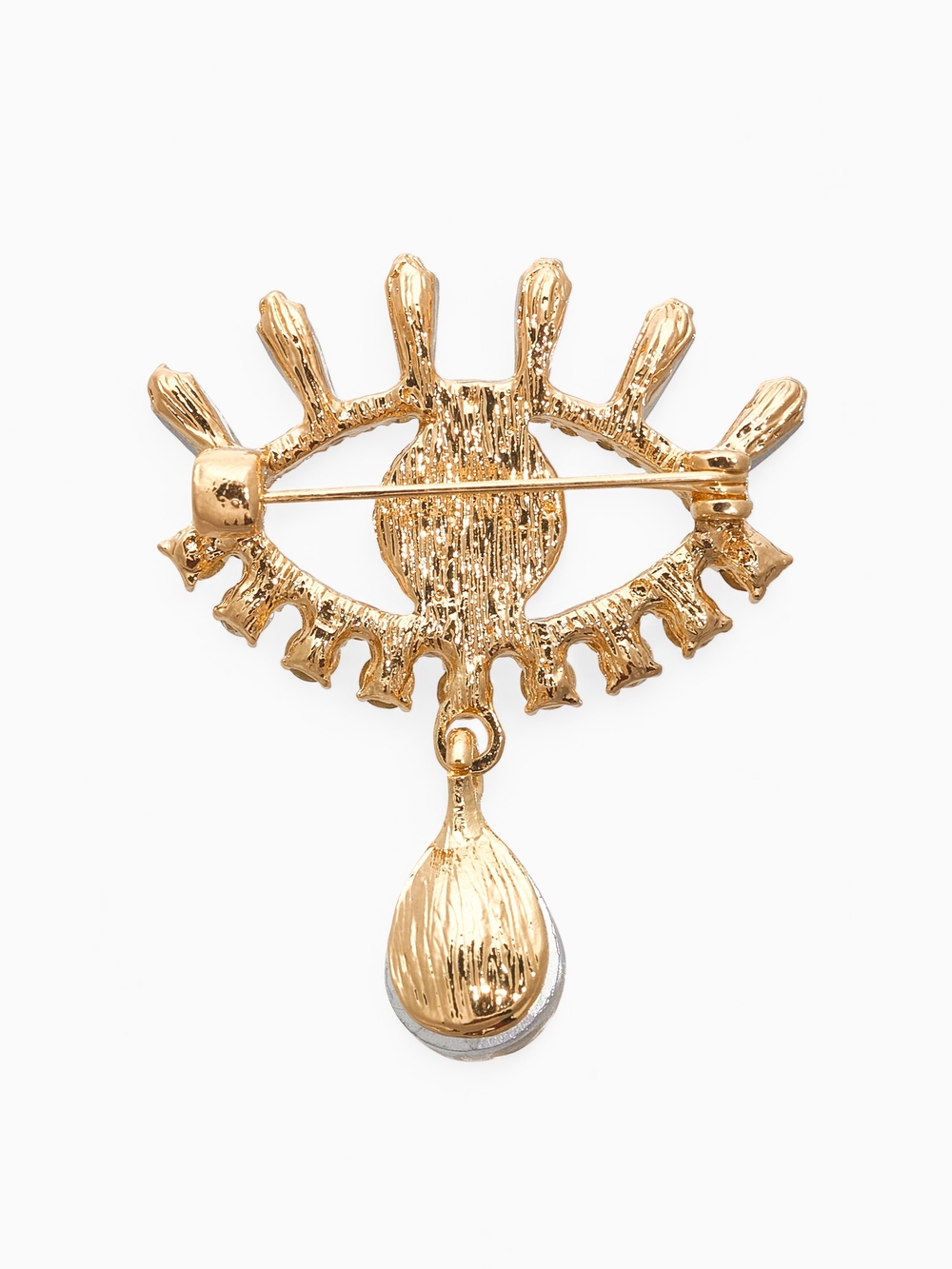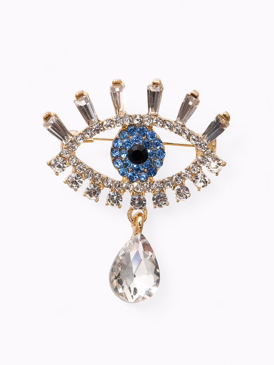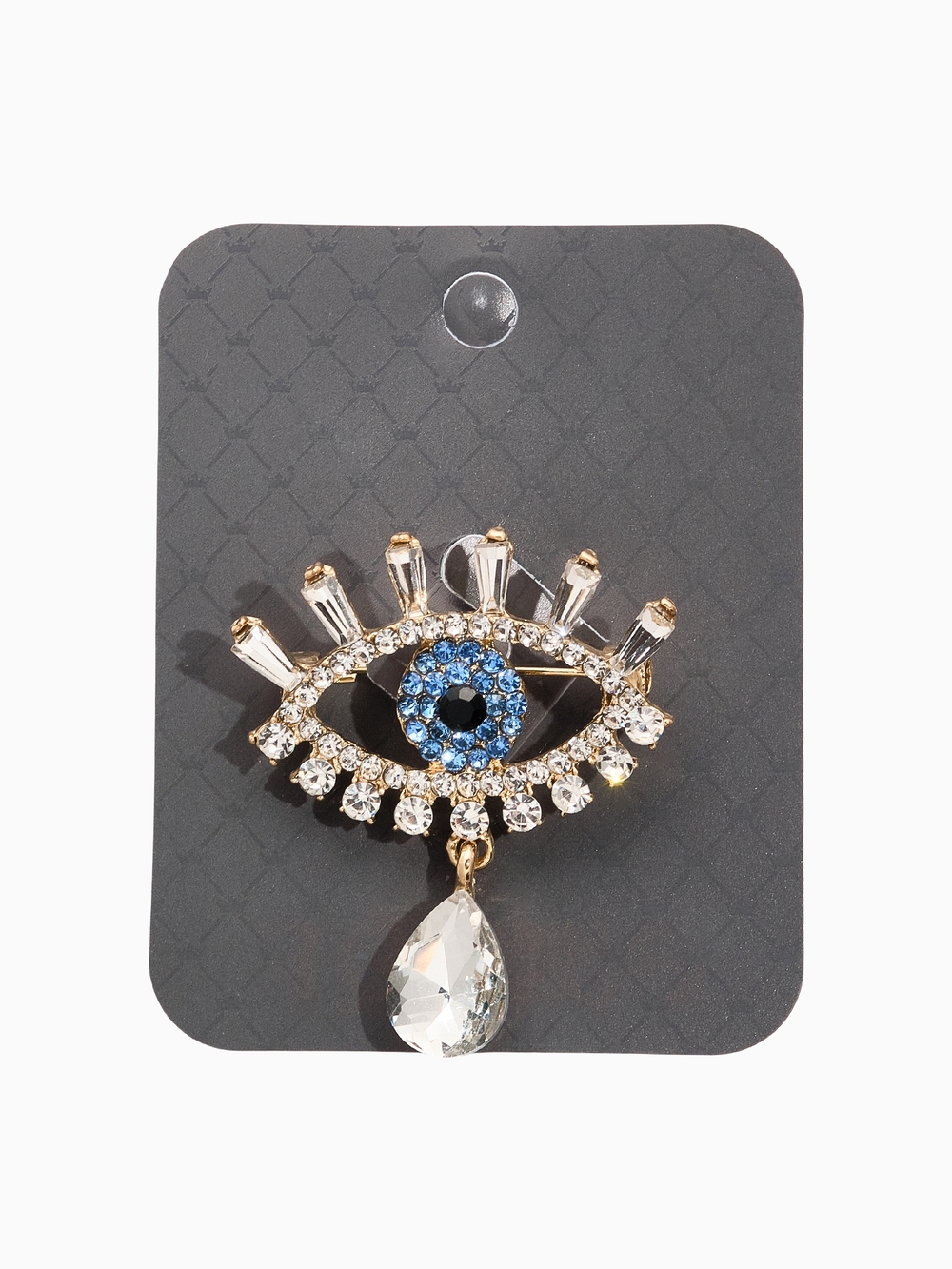 Позвольте проникнуться мистической защитой древнего символа с очаровательной брошью-талисманом в виде небесного глаза, погружённого в серебристо-голубую гамму и обрамлённого нежным золотым ободком.