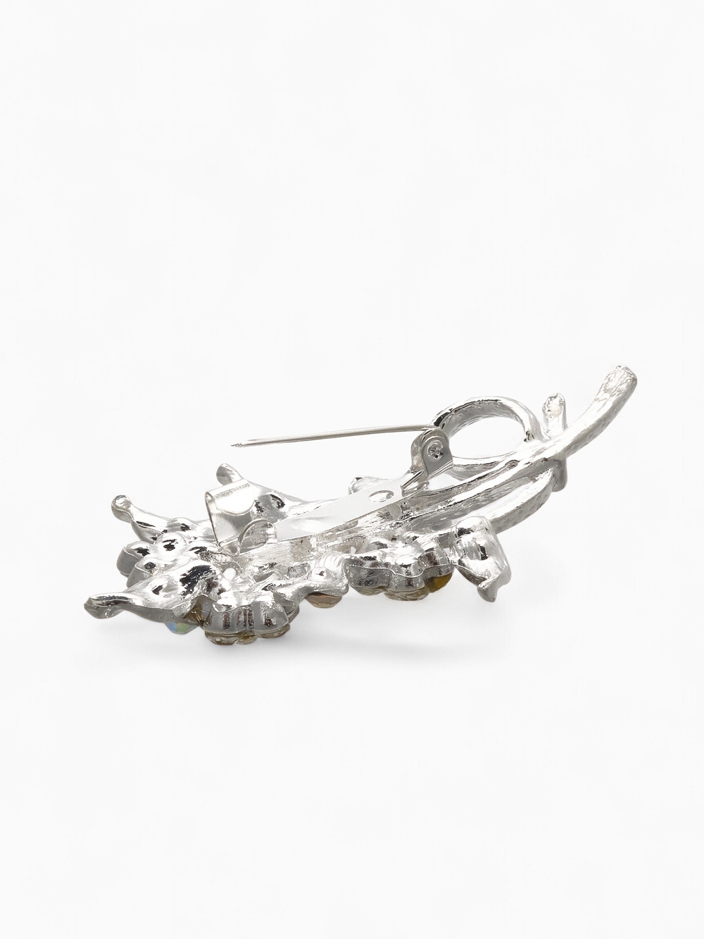 Брошь "Цветы на ветке" (белый в серебре)