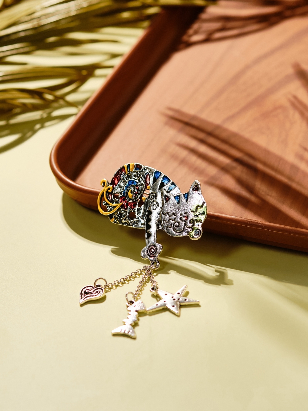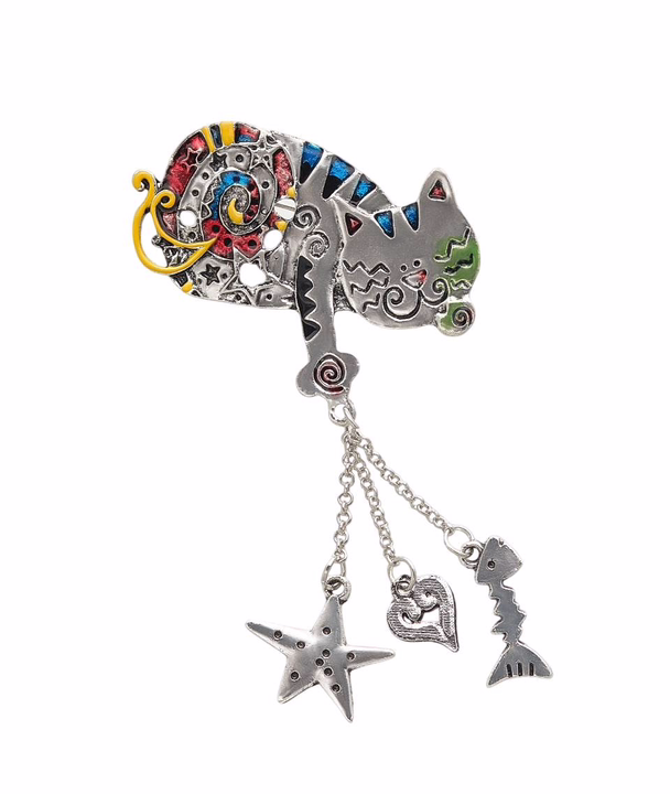 Очаровательная брошь с изображением сказочного кота в серебристом исполнении станет ярким акцентом вашего образа. С длиной 8,7 см, это украшение привлекает внимание своей оригинальностью и уникальным дизайном, который сочетает в себе игривость и стиль. Многоцветные эмалевые вставки придают броши живость и индивидуальность, а серебряная фурнитура добавляет нотку элегантности.