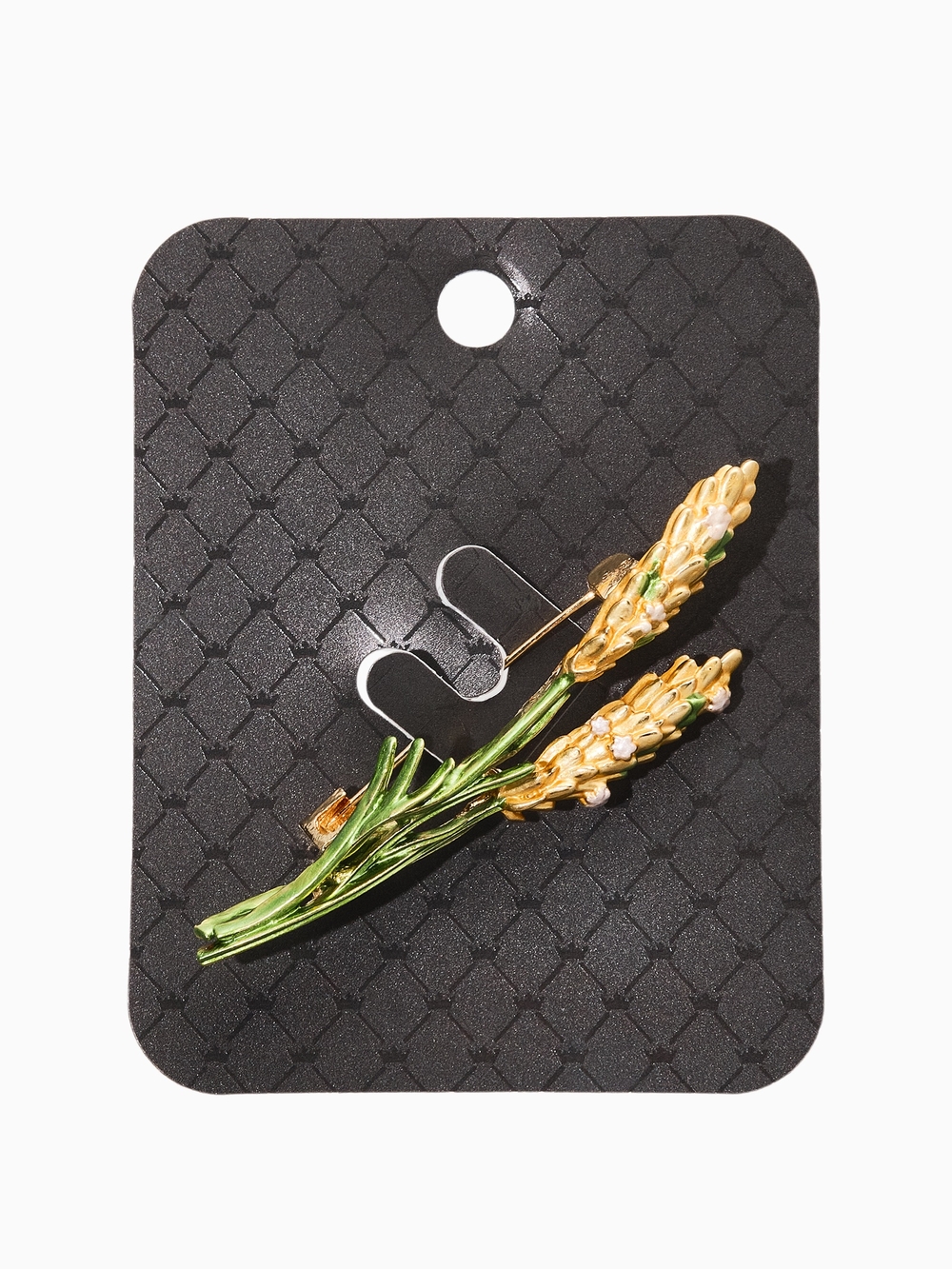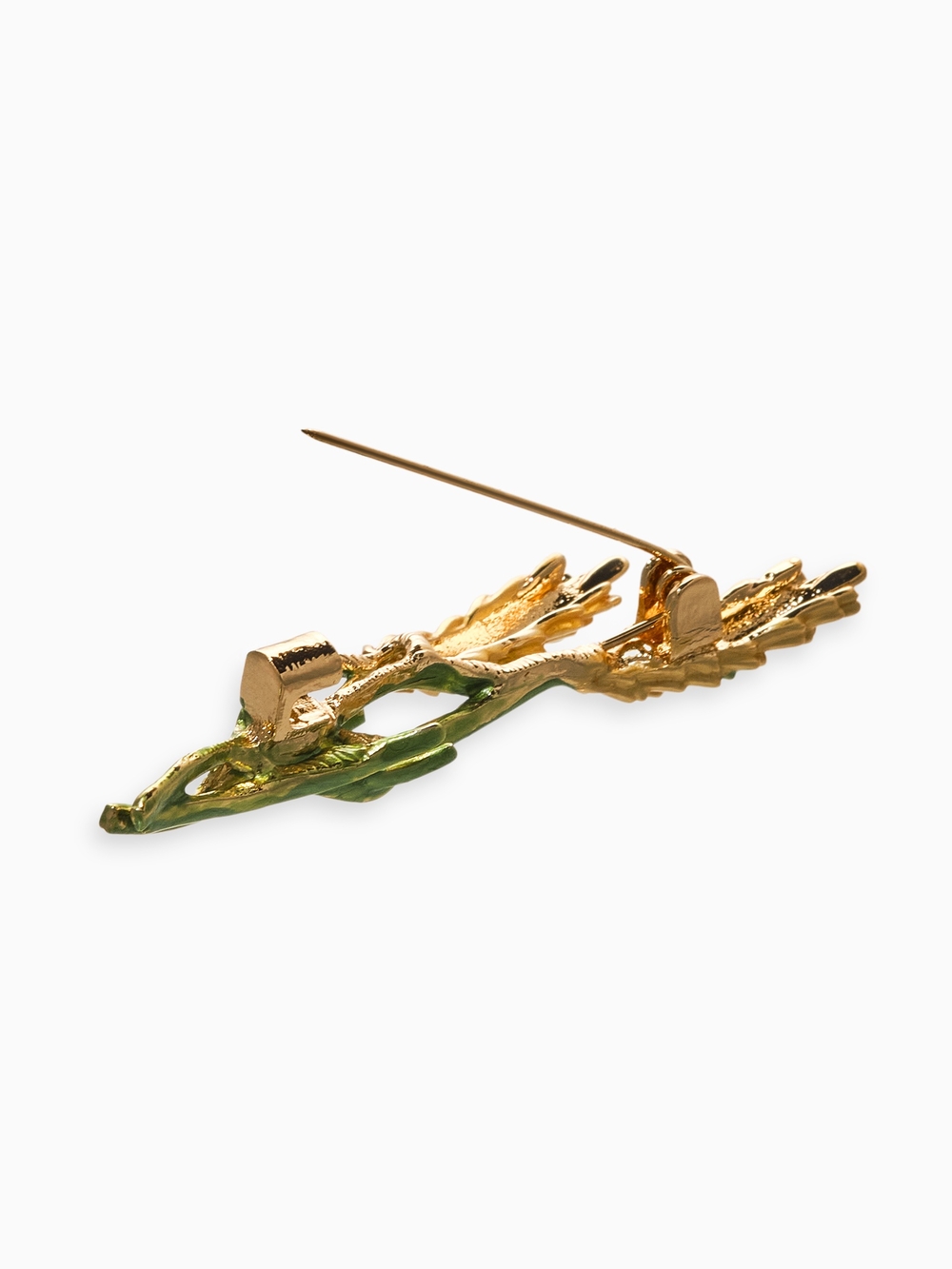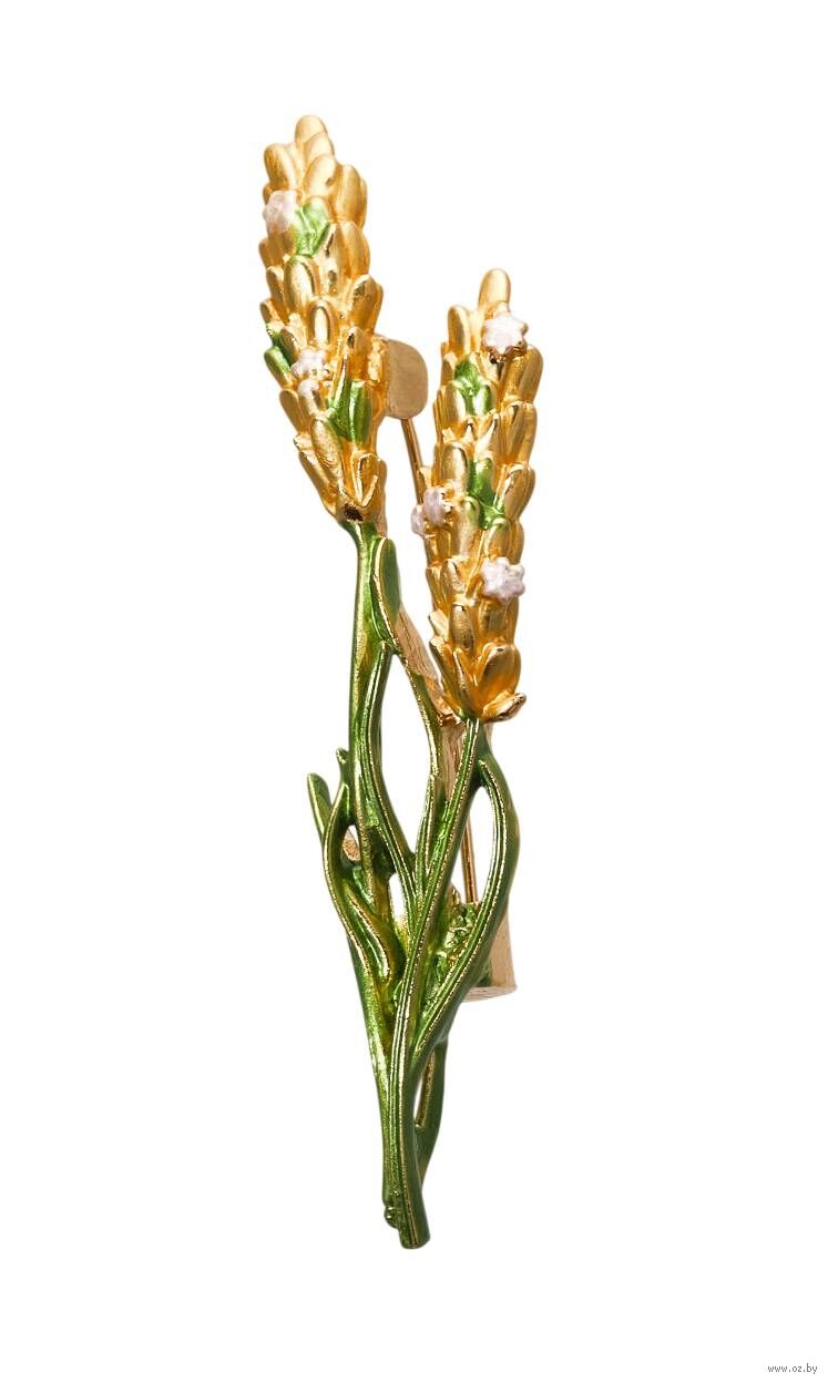 Эта изящная брошка станет прекрасным дополнением любого женского образа. Созданная в форме золотых колосьев пшеницы, украшенных зеленовато-жёлтой эмалью, она символизирует плодородие природы и женственность.