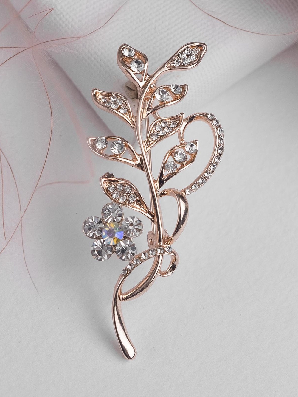 Этот изысканный аксессуар в виде ветви с цветком в белом цвете и розовом золоте станет ярким акцентом вашего образа. Длина броши 6 см позволяет ей элегантно выделяться, придавая вашему наряду нотку утончённости и нежности. Изготовленная из качественного металла, она сочетает в себе прочность и лёгкость, а вставки из страз добавляют блеска и изысканности.