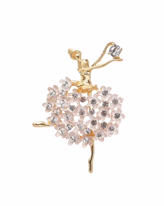Белоснежная брошь с изящным силуэтом балерины воплощает женственность и грацию, подчёркивая утончённый вкус своей обладательницы. Золотистое металлическое основание гармонично сочетается с нежной эмалью и сверкающими стразами, создавая эффект лёгкости и воздушности в каждом движении. Длина 4 см делает украшение заметным, но при этом не перегружает образ, добавляя ему изысканности и изящества.