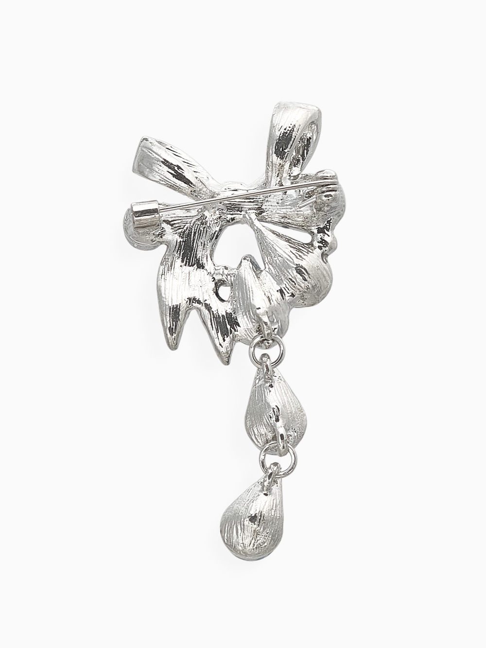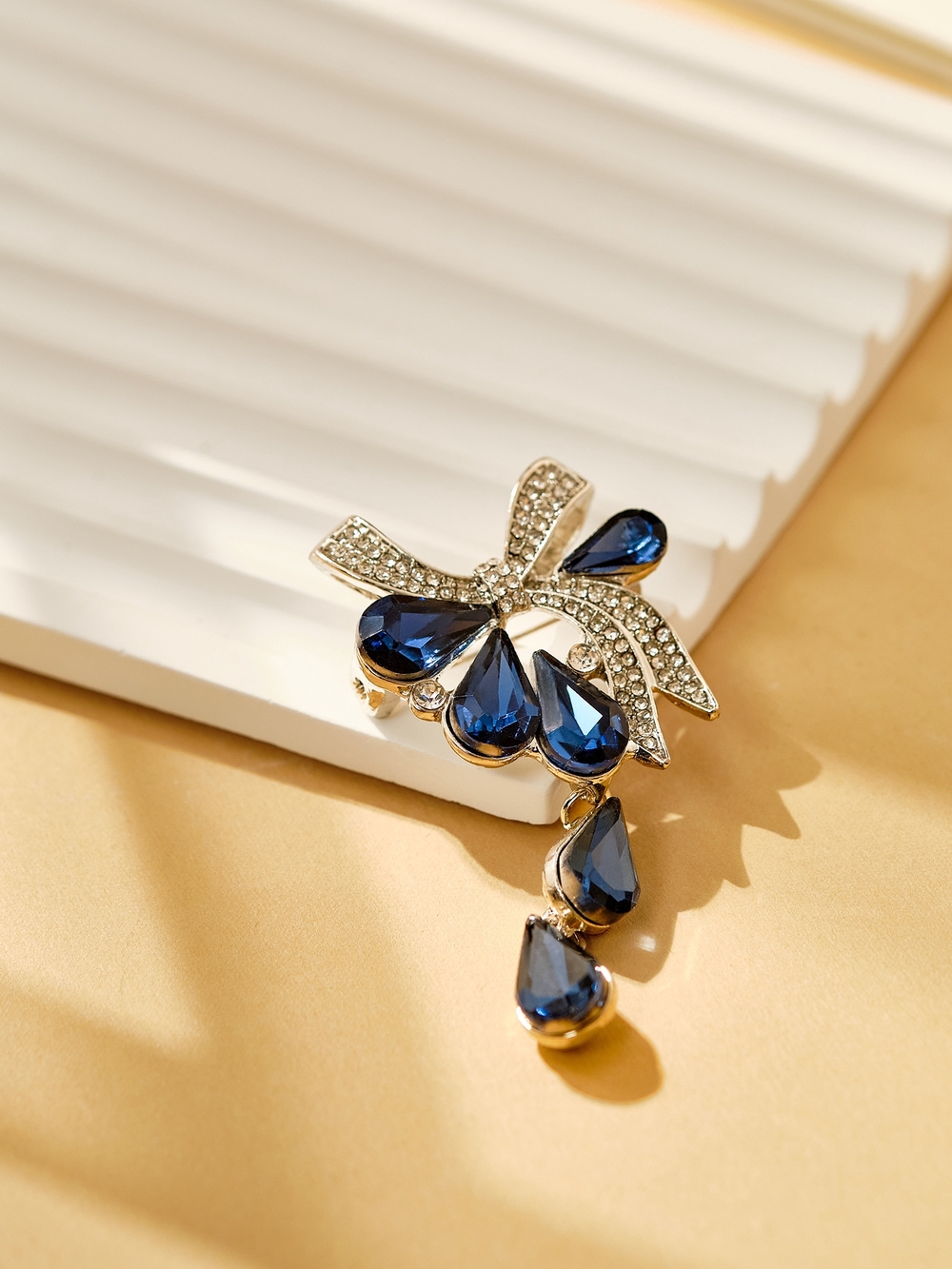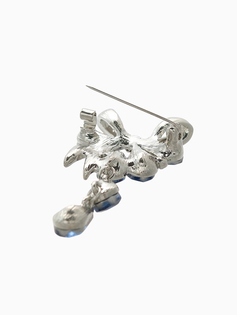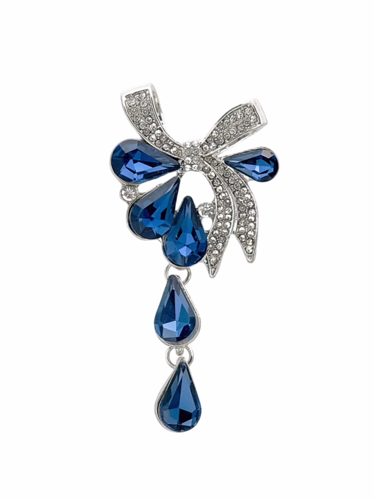 Погрузитесь в мир утонченной элегантности с этой восхитительной брошью в форме цветочной росы с бантом. Бело-синие стразы на серебристом основании создают гармоничное сочетание, которое привлекает взгляды и подчеркивает вашу индивидуальность.
