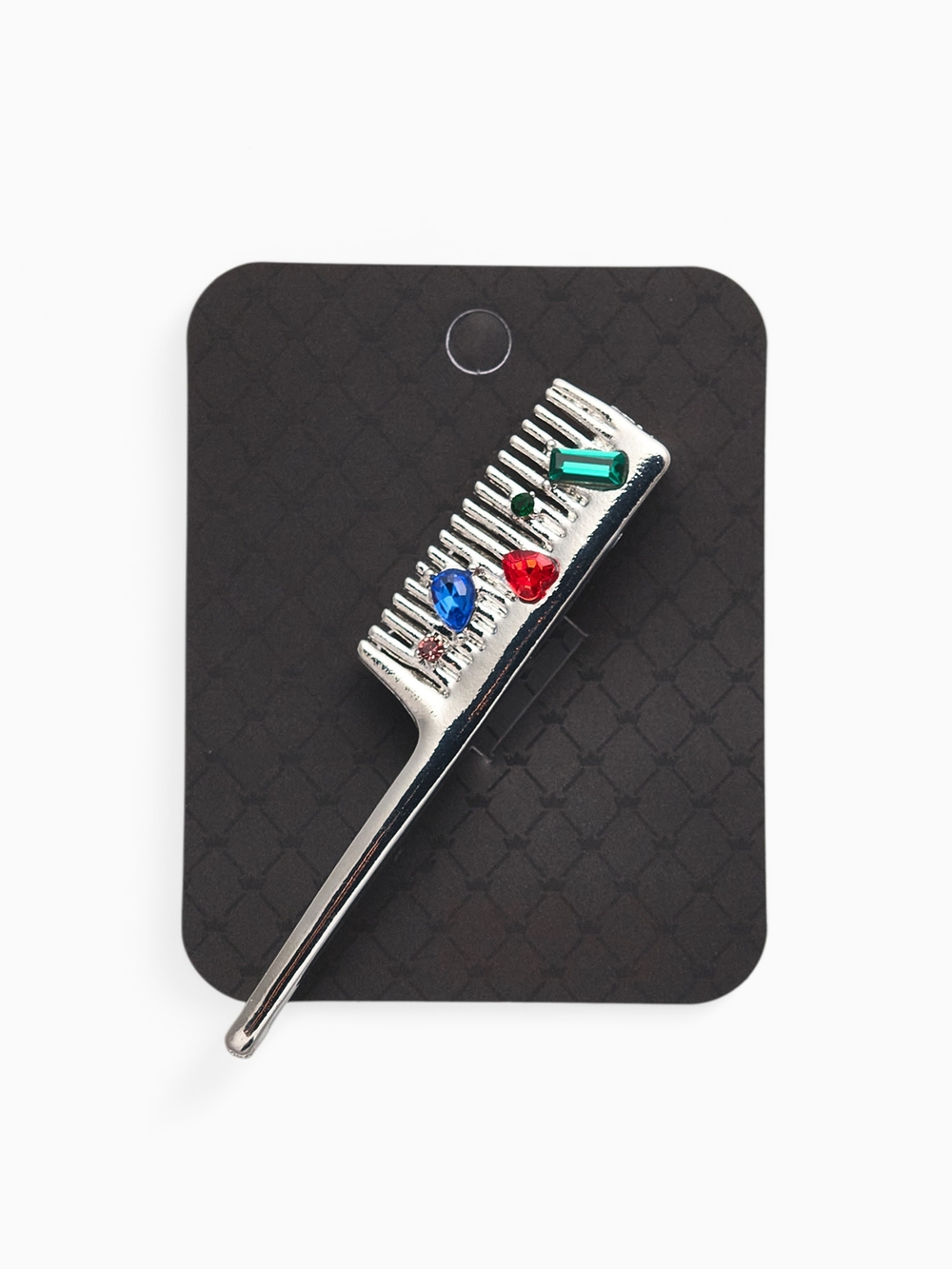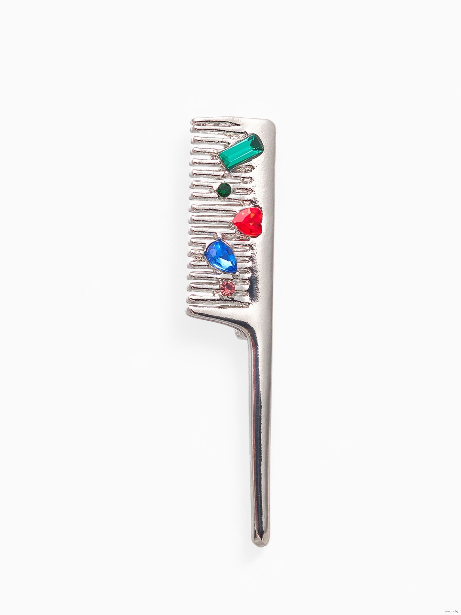 Стиль и утонченность объединены в этой изящной броши, выполненной в форме расчески с цветными стразами на серебристой металлической основе. Длина 7 см и аккуратное исполнение делают её выразительным акцентом, способным подчеркнуть индивидуальность и творческий подход к своему образу.