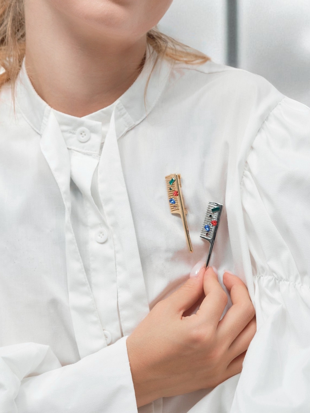 Аксессуар отражает тематику хобби и профессий, идеально подходя для женщин, ценящих оригинальные детали и символику в украшениях. Брошь легко впишется в любой стиль – от повседневного до праздничного, добавляя нотку блеска и изящества.