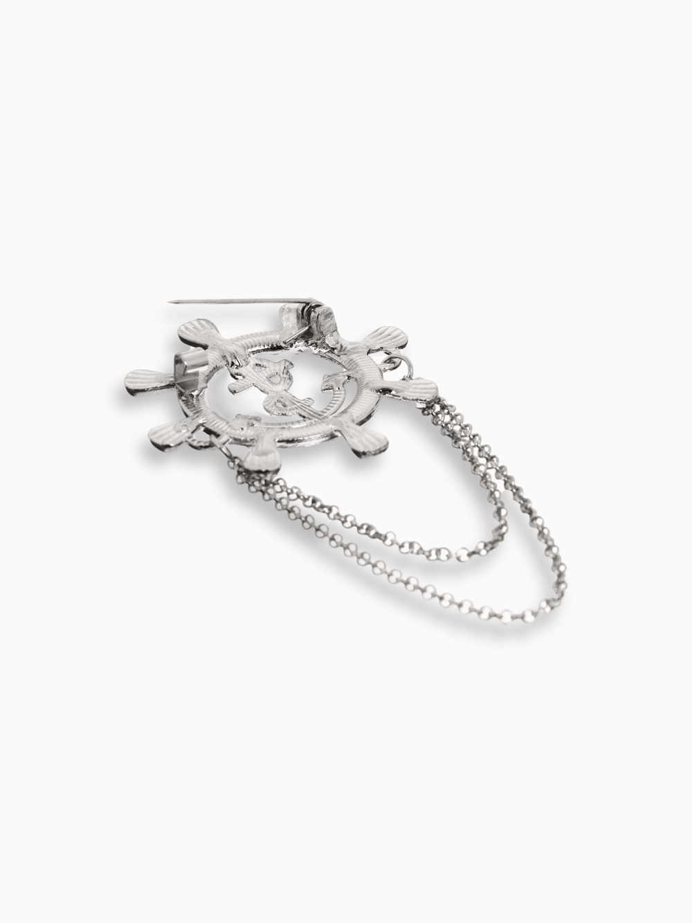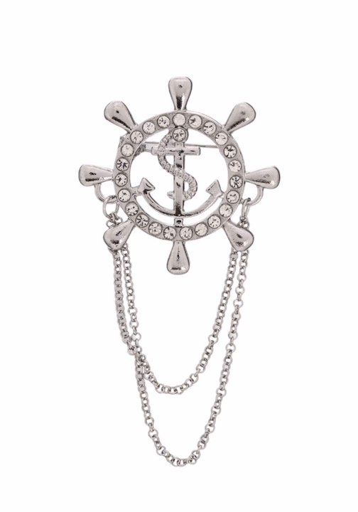 Брошь в морском стиле "Штурвал" с якорем и цепочкой – это изысканный аксессуар, который добавит вашему образу нотку морской романтики и элегантности. Выполненная в белом цвете с серебристыми акцентами, она сочетает в себе лаконичность и изысканность, делая её универсальной для любого случая. Изготовленная из металла и украшенная стразами, брошь отличается прочностью и долговечностью, сохраняя свой безупречный вид на долгие годы.
