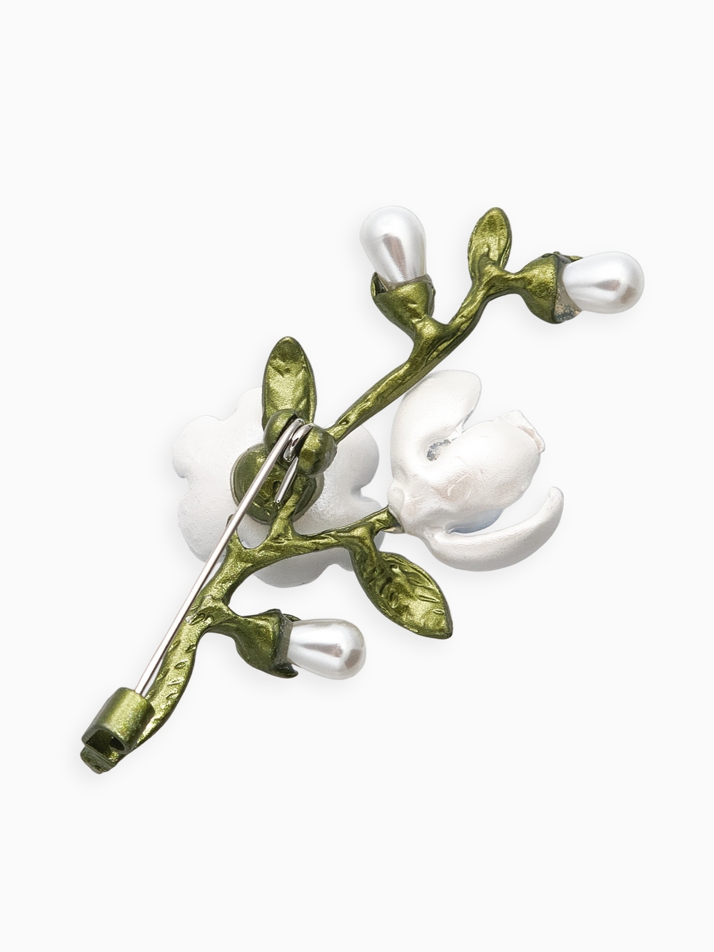 Нежная веточка магнолии теперь доступна в форме броши, ставшей воплощением весеннего настроения и естественной красоты. Искусно выполненные цветы магнолии украшены цветной эмалью, передавая яркие оттенки природы и заставляя окружающих восхищённо улыбнуться.