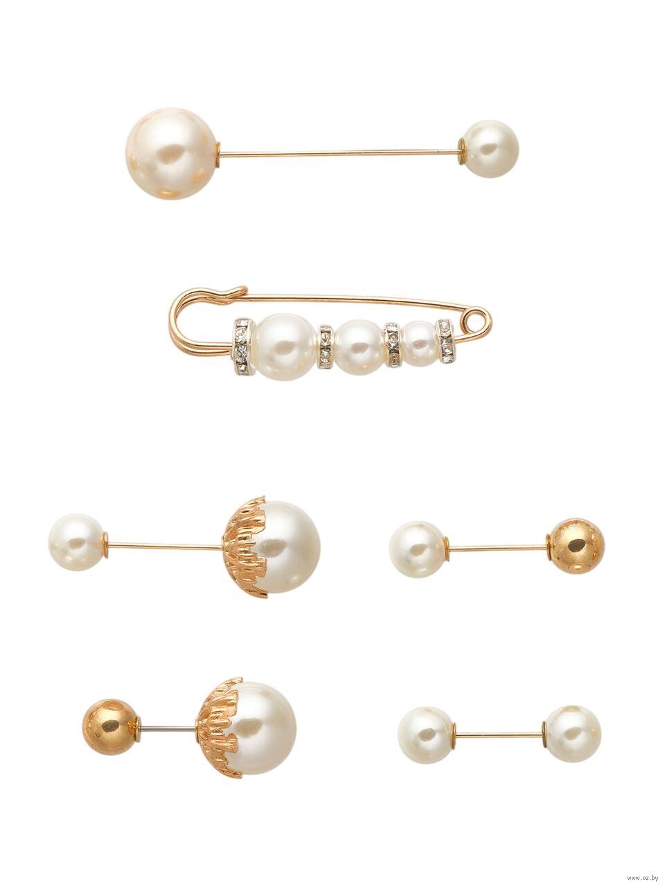 Набор булавок (6 шт.) "Жемчуг", 6.5 см, белый в золоте внесёт особую нотку изящности в ваш образ.