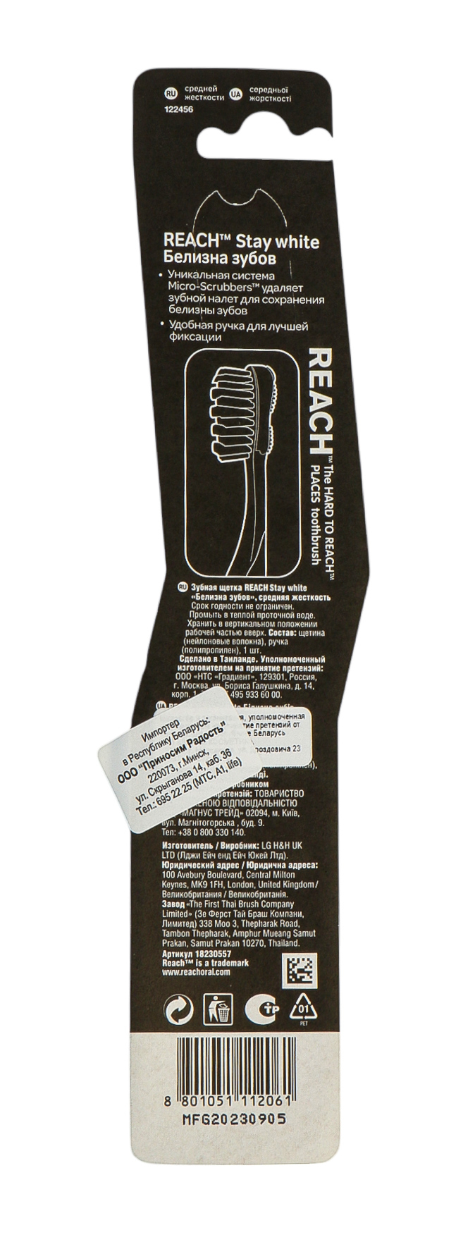 Щётка имеет специальную систему Micro Scrubbers, которая эффективно удаляет зубной налёт. Полирующая подушечка на задней стороне головки помогает удалять бактерии на языке и щеках и избежать скопления патогенной микрофлоры. На ручке есть резиновая накладка, благодаря которой щётку удобно держать в руках. Высокая степень жёсткости подойдёт для здоровой полости рта и обеспечит интенсивную чистку.