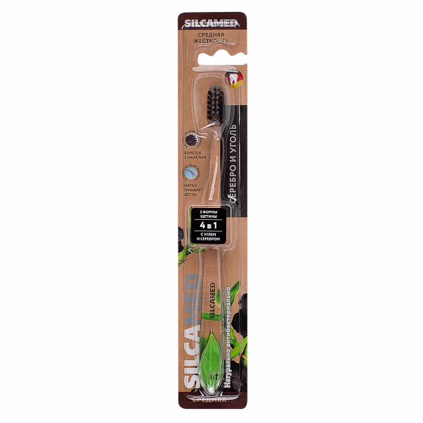 Профилактическая зубная щетка Silca Med Pro Organic Серебро и уголь Средняя жесткость.