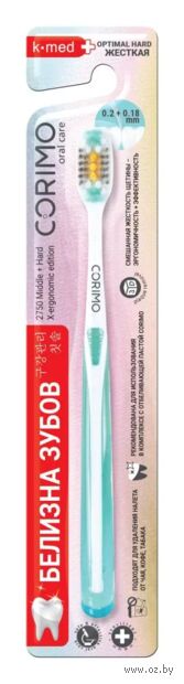 Шелковистые щетинки мягко полируют эмаль и бережно вычищают самые труднодоступные участки полости рта, такие как межзубное и придесневое пространство. Это обеспечивает профилактику образования зубного камня и поддерживает здоровье ваших зубов. Зубная щетка Corimo представлена в различных цветах, что позволяет выбрать щетку на свой вкус. Выбирая зубную щетку Corimo, вы получаете качественный и эффективный продукт, который поможет сохранить белизну и здоровье ваших зубов.