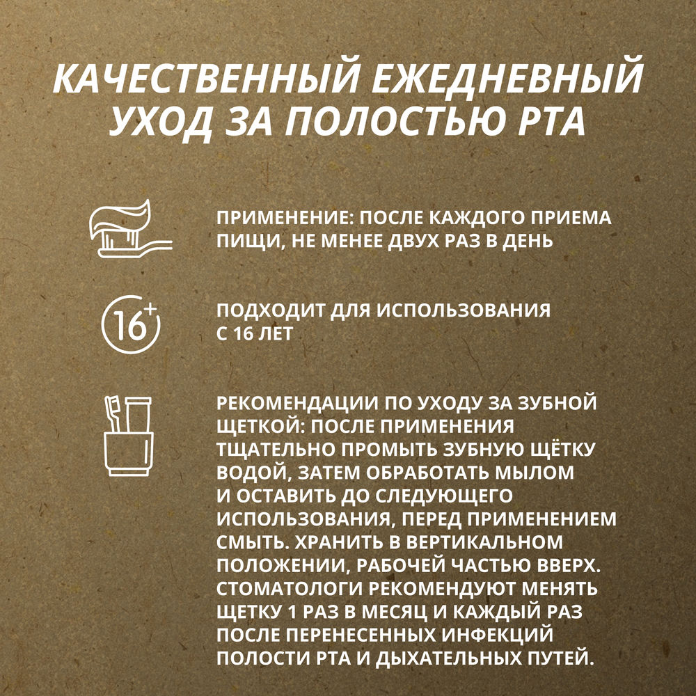 После применения промыть зубную щётку водой. Хранить в вертикальном положении, рабочей частью вверх.Состав