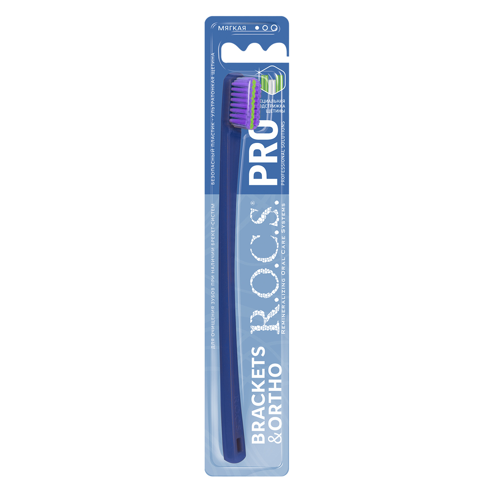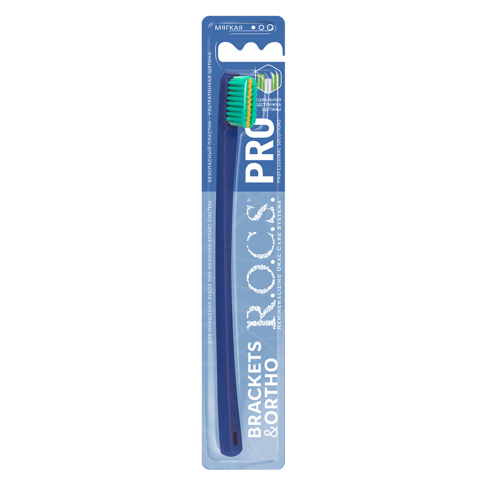 Зубная щетка R.O.C.S.® PRO Brackets & Ortho предназначена для ежедневного очищения зубов при наличии брекет-систем.